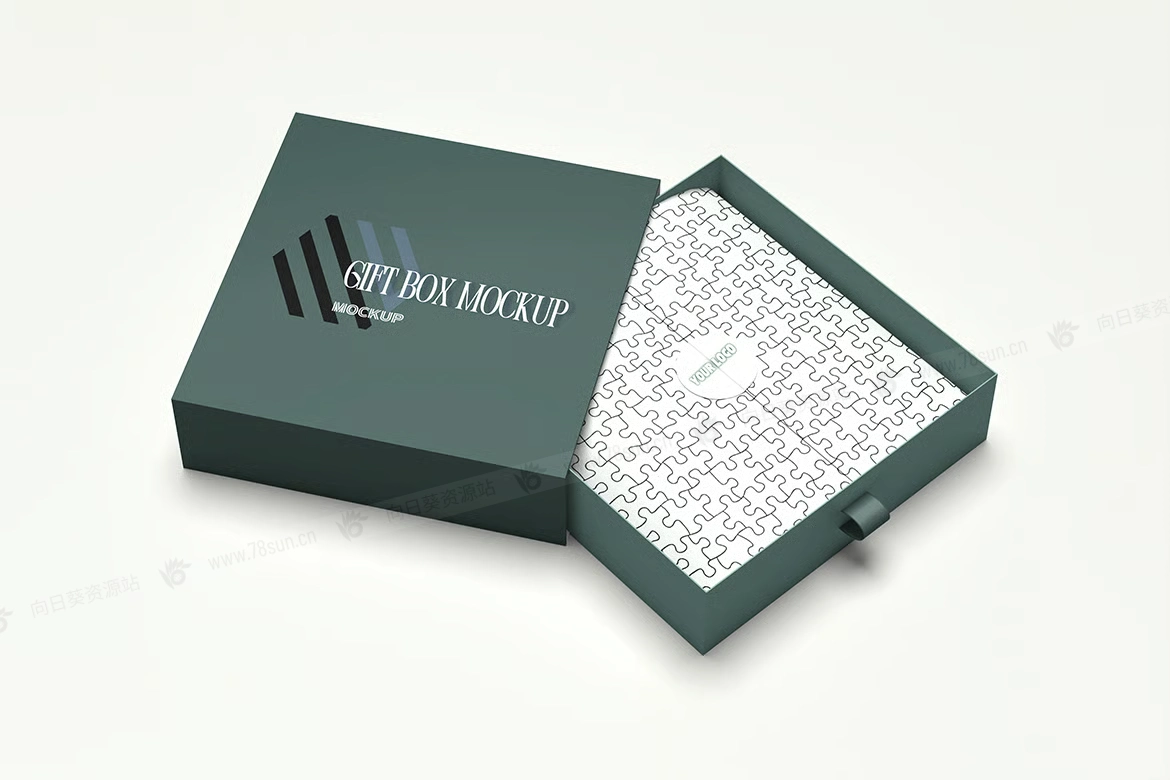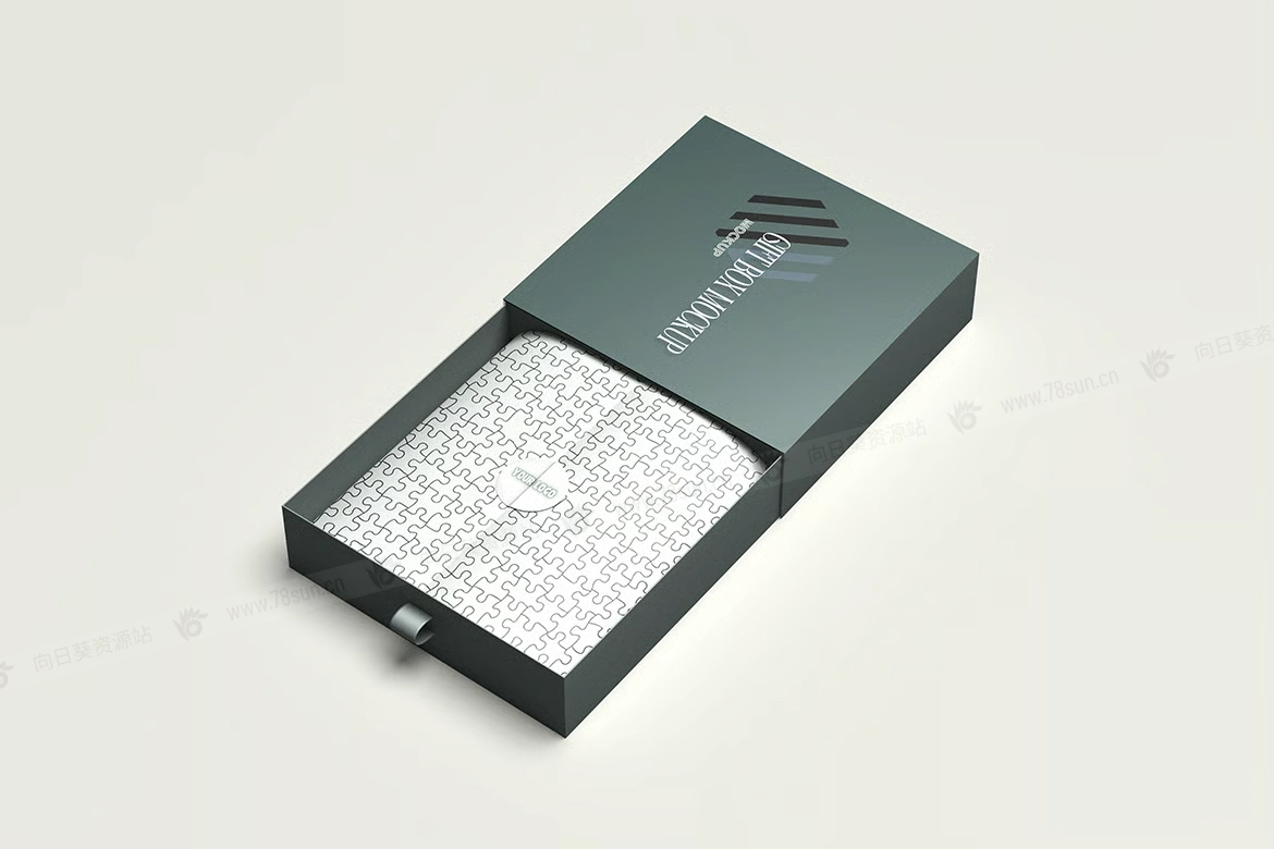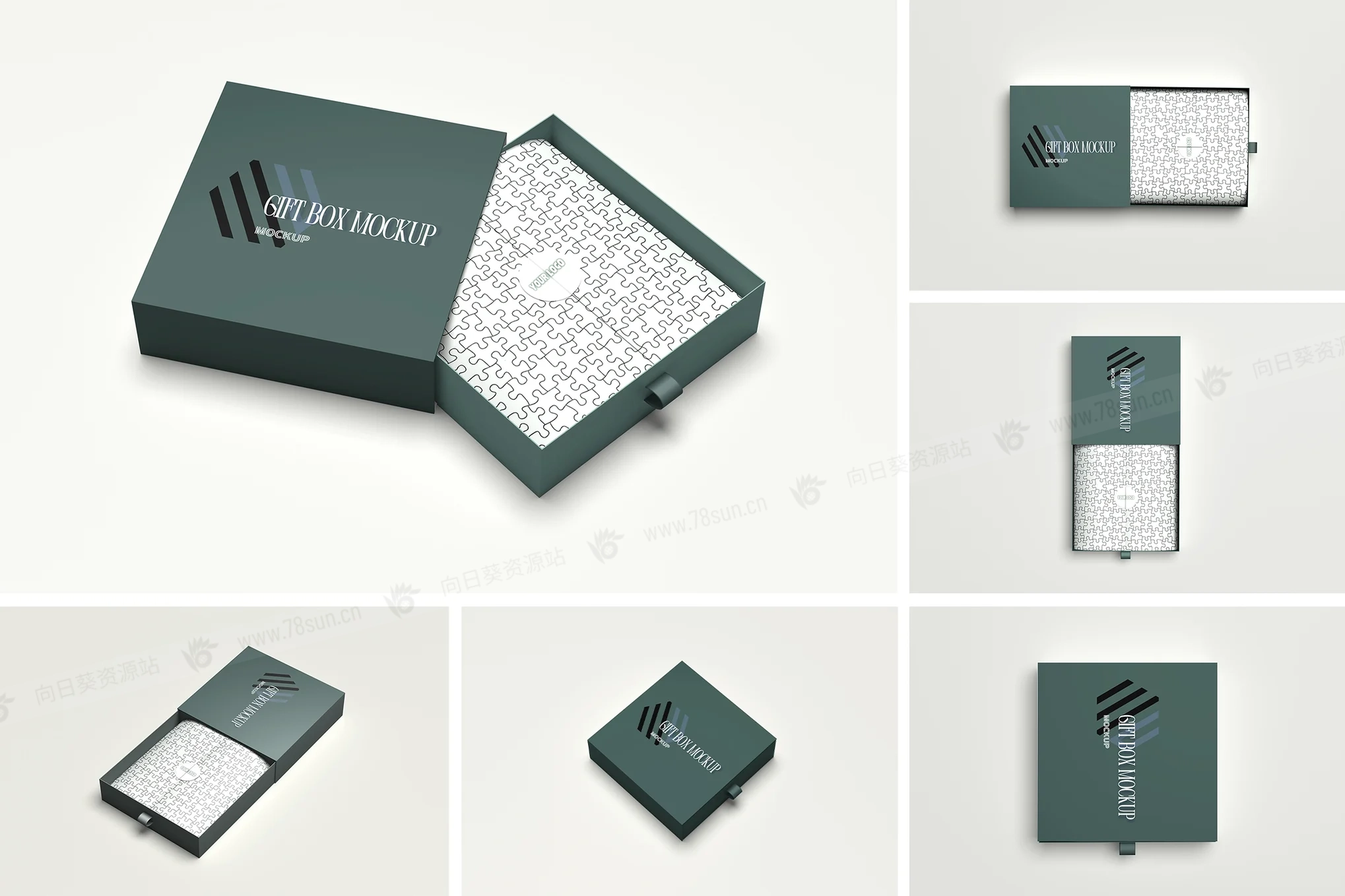 滑箱礼品盒VI效果图展示智能贴图psd设计样机,包括 6 个礼品盒模型,以专业地展示您的设计。以 PSD Photoshop 格式提供,具有智能对象功能,可帮助您在几秒钟内用自己的设计替换当前设计。
