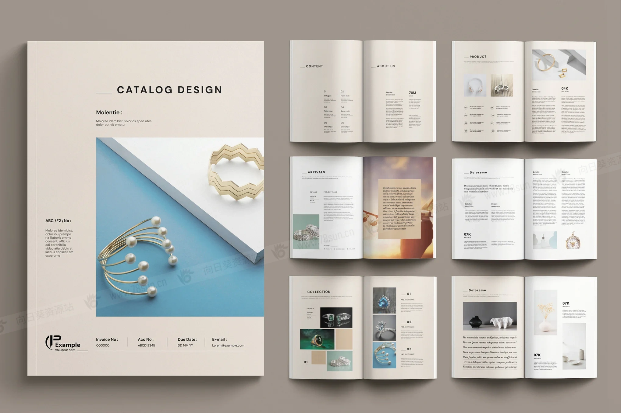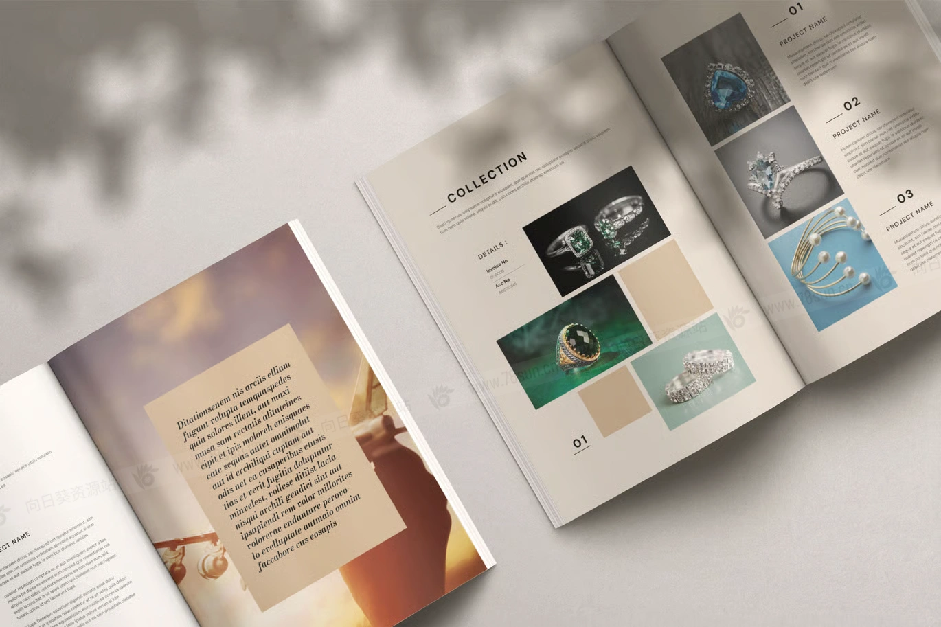 饰品首饰产品目录小册子杂志宣传册画册indd设计模板,添加您的徽标和图像,并编辑您的品牌颜色和排版,