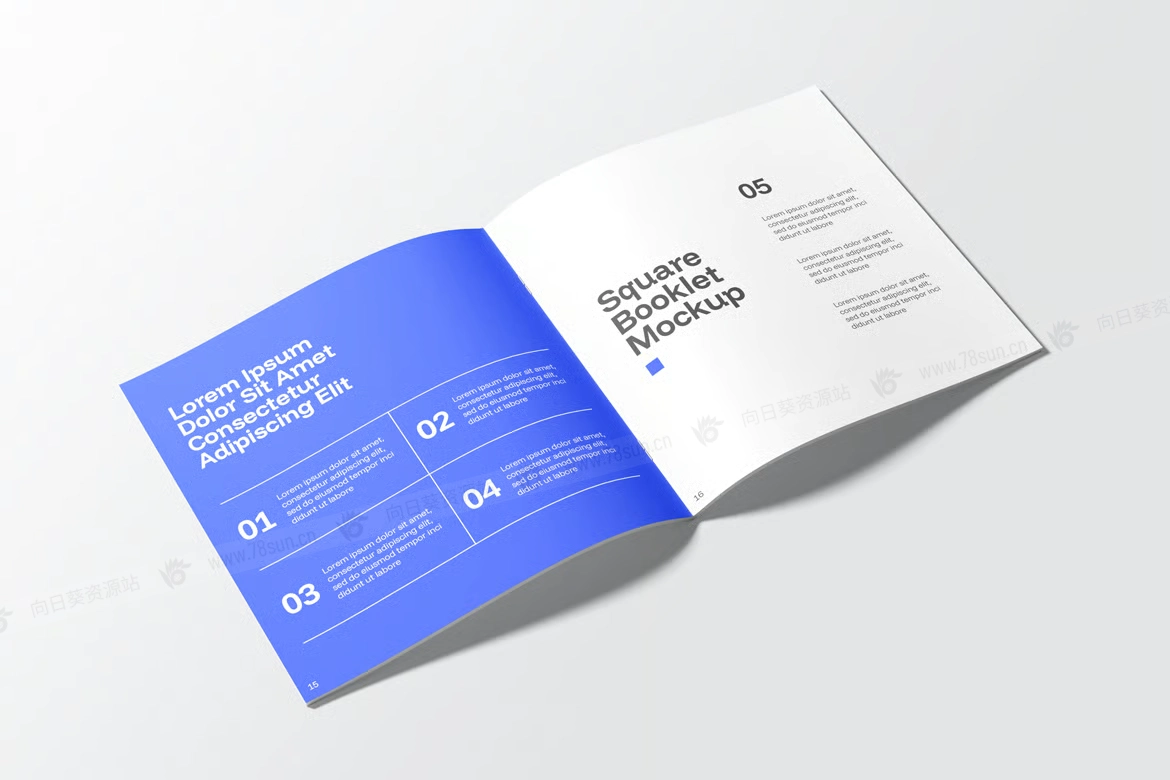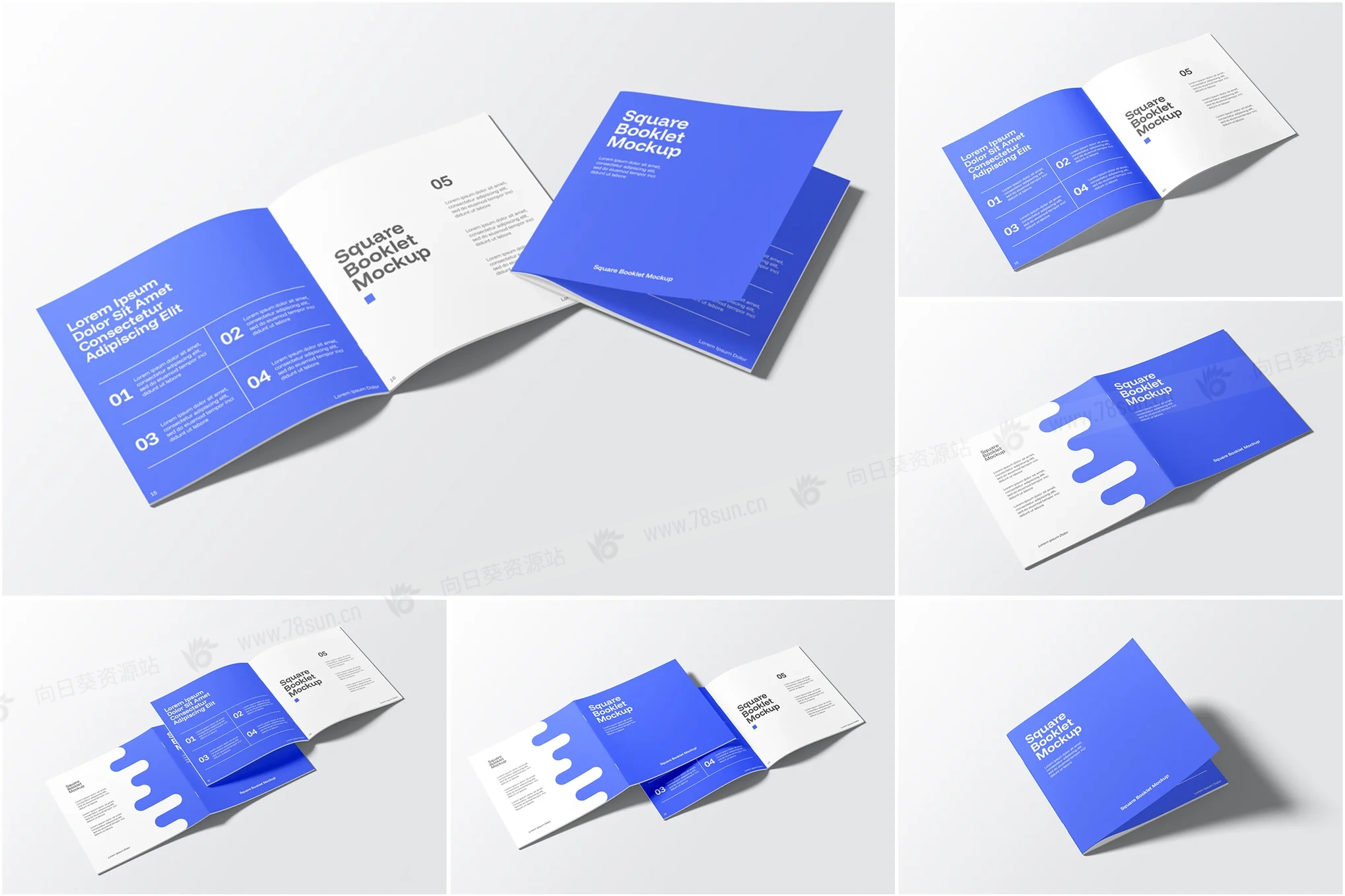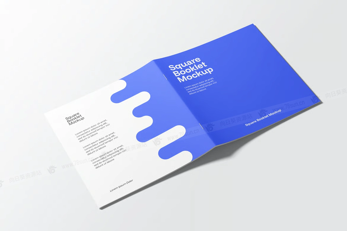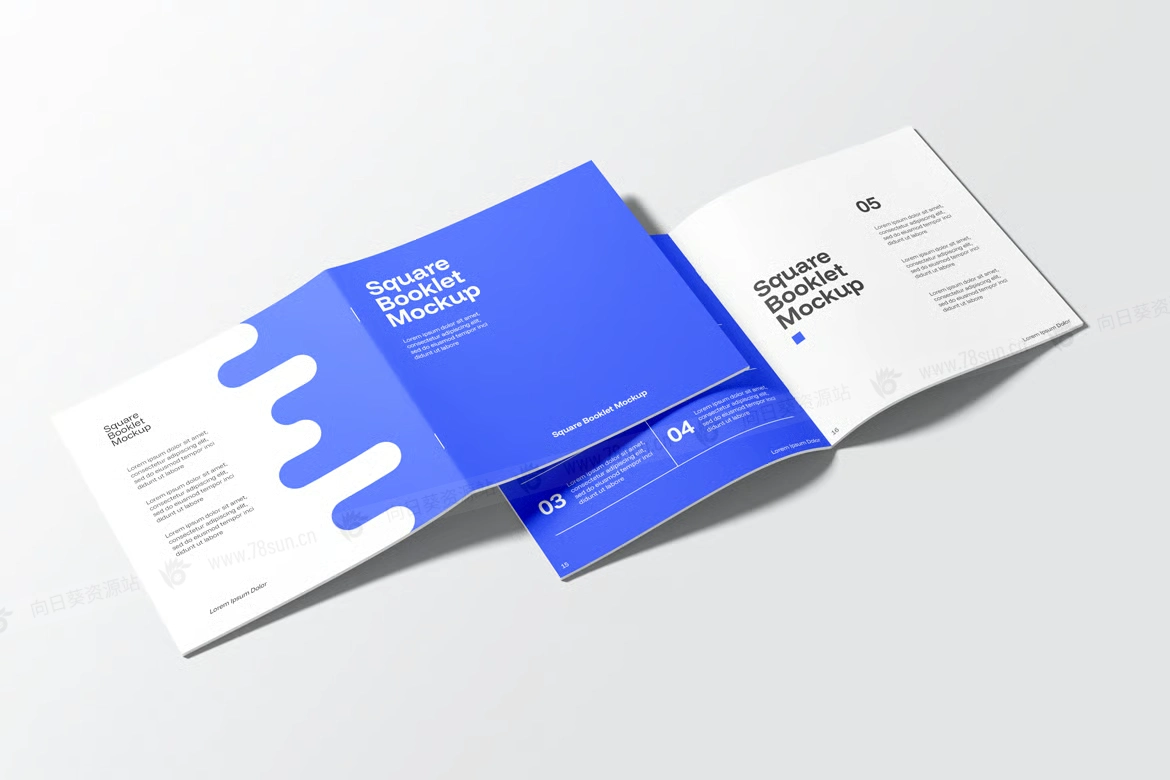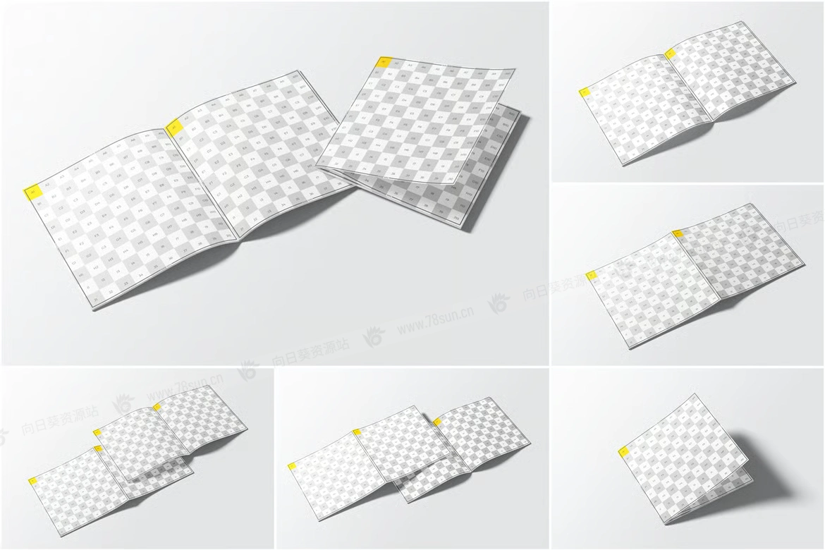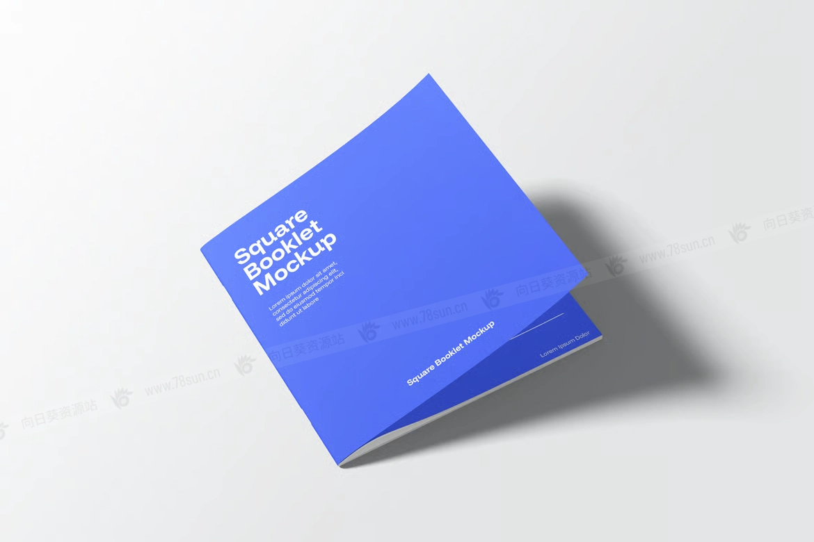 方形双折页宣传单小册子VI效果图展示智能贴图psd设计样机,