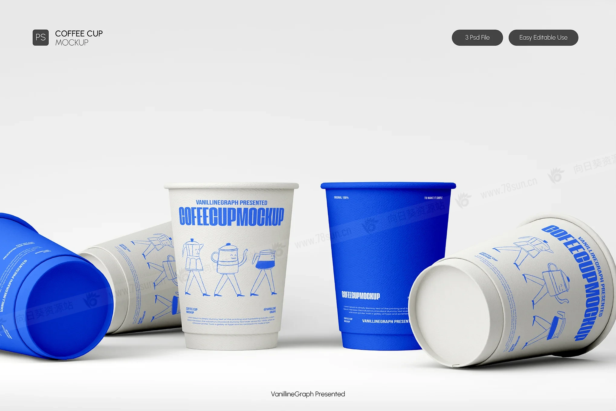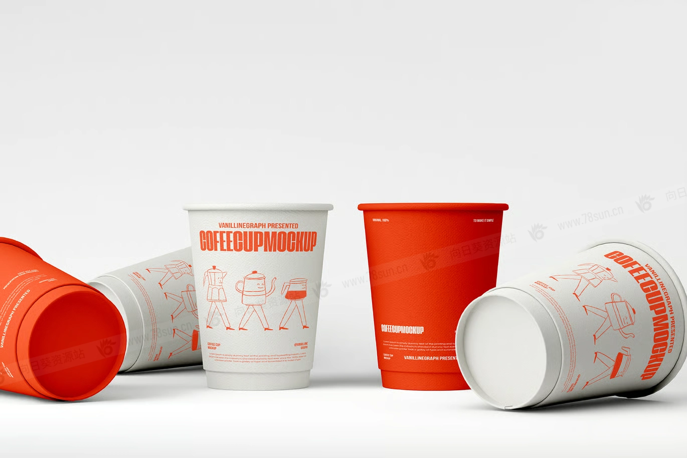 咖啡杯纸杯品牌VI效果图展示智能贴图psd设计样机,