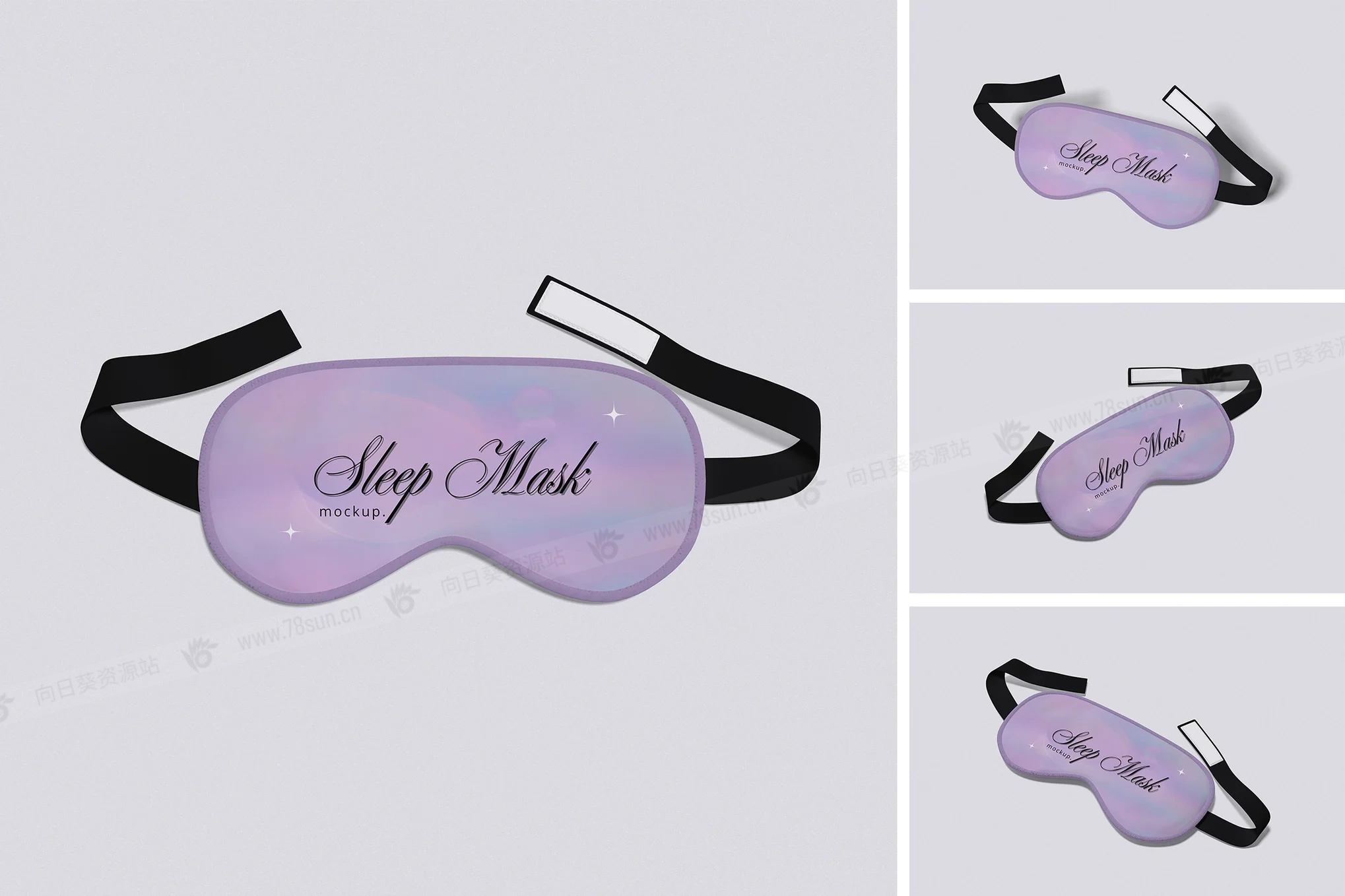 睡眠面罩眼罩品牌VI效果图展示智能贴图psd设计样机,此模型包括 04 个具有分层良好 PSD 文件,并且此模型还使用智能对象功能,这意味着您可以在几秒钟内轻松快速地使用自己的设计更改当前设计。