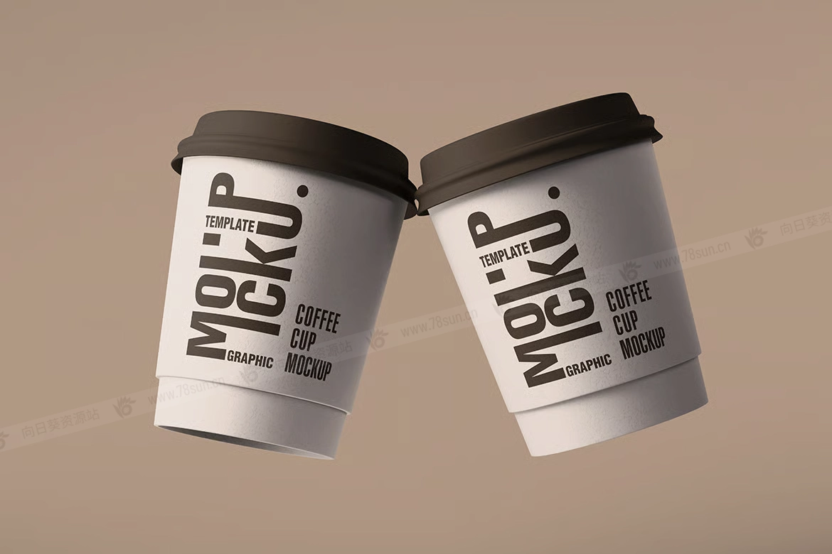 咖啡杯纸杯品牌VI效果图展示智能贴图psd设计样机,使用智能对象非常易于使用,所有颜色部分都是可编辑的,并且对象与背景分开。