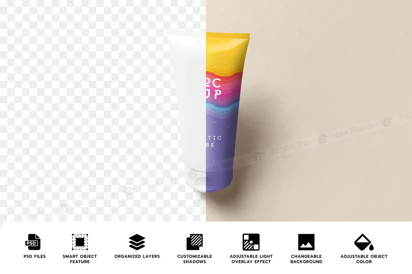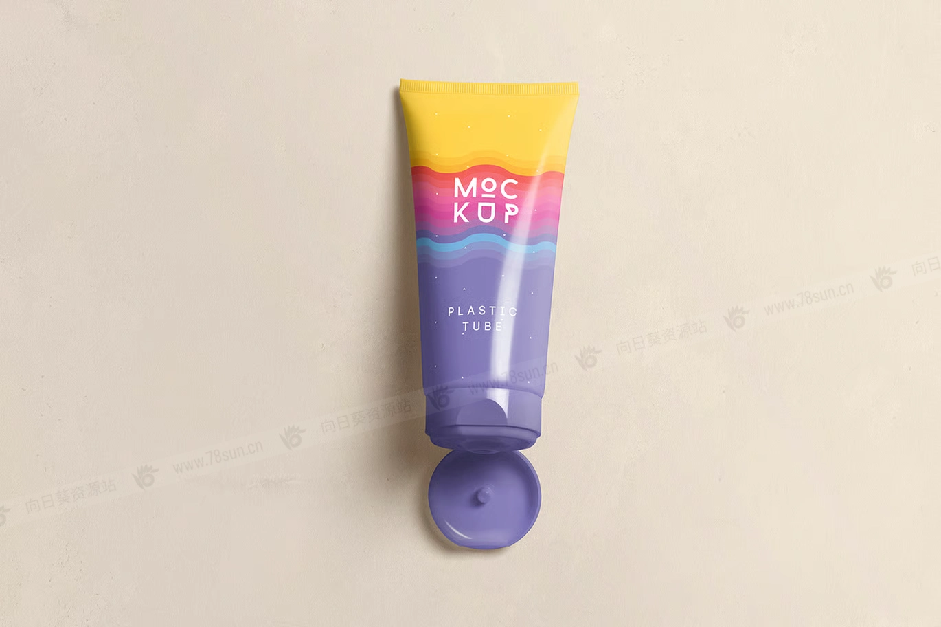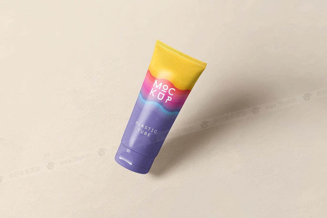 洗面奶护手霜软管品牌VI效果图展示智能贴图psd设计样机,具有智能图层、逼真的照明和高分辨率质量,