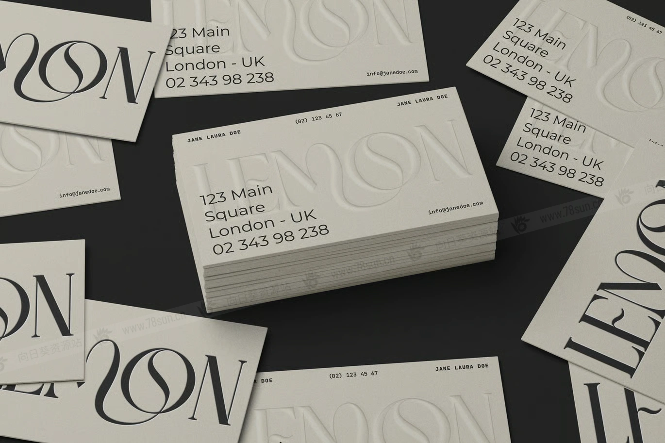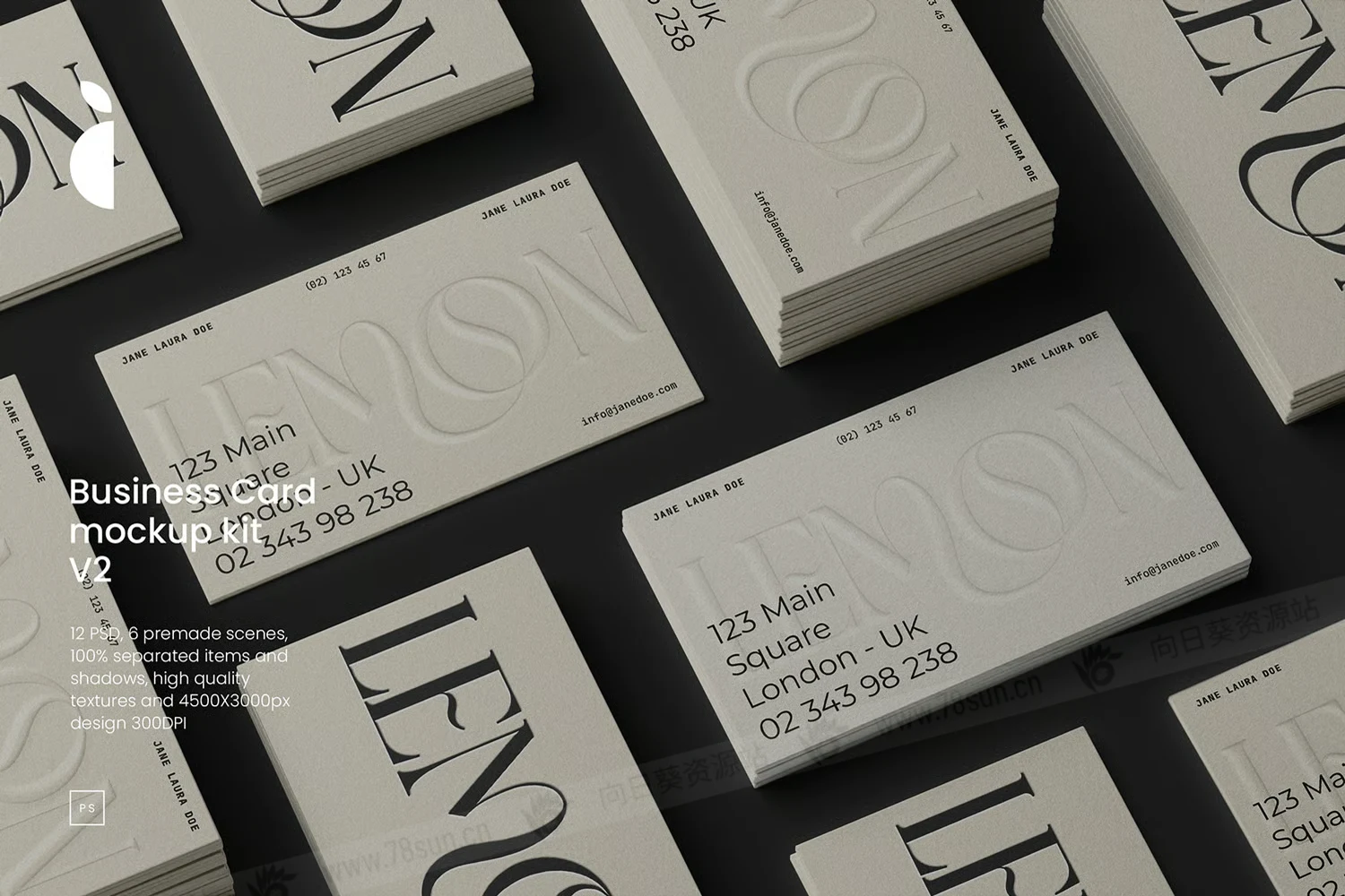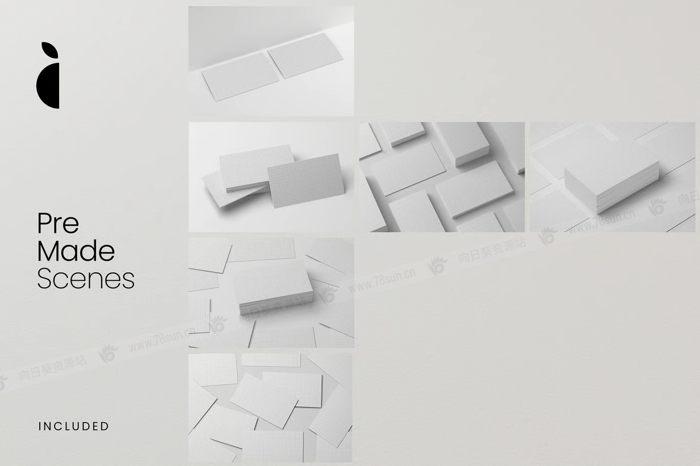 名片商业卡片品牌VI效果图展示智能贴图psd设计样机,包括 6 个名片模型预制场景,总共 12 个 PSD。100% 可定制。