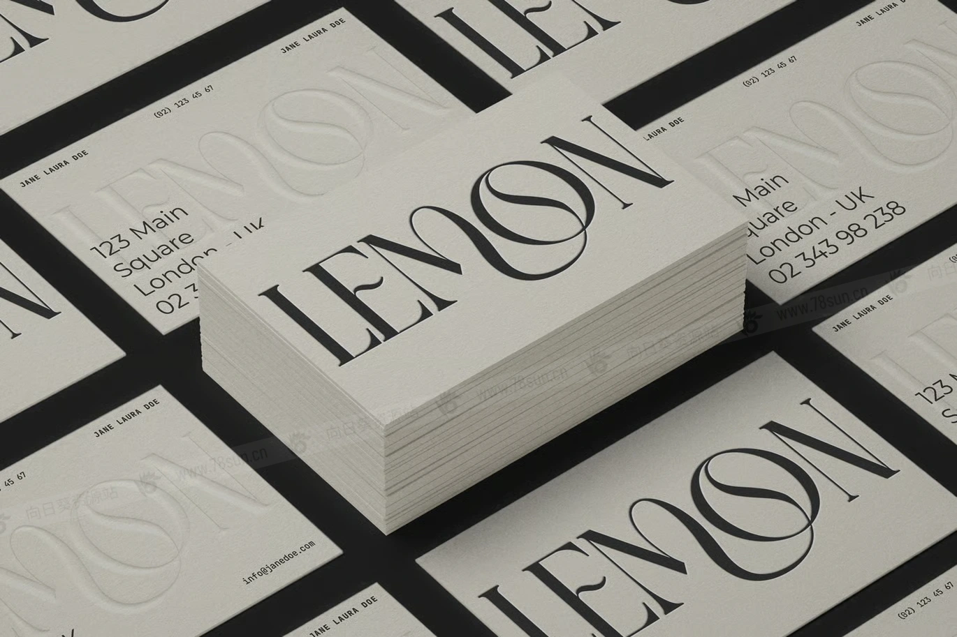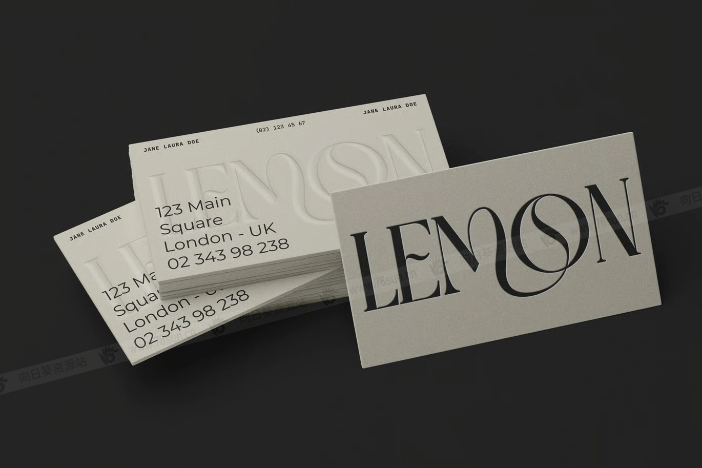 - 应用设计包含在可编辑的名片布局和浮雕/凹陷效果中。