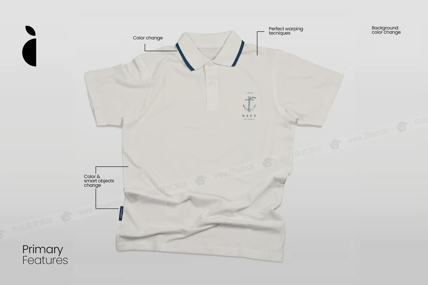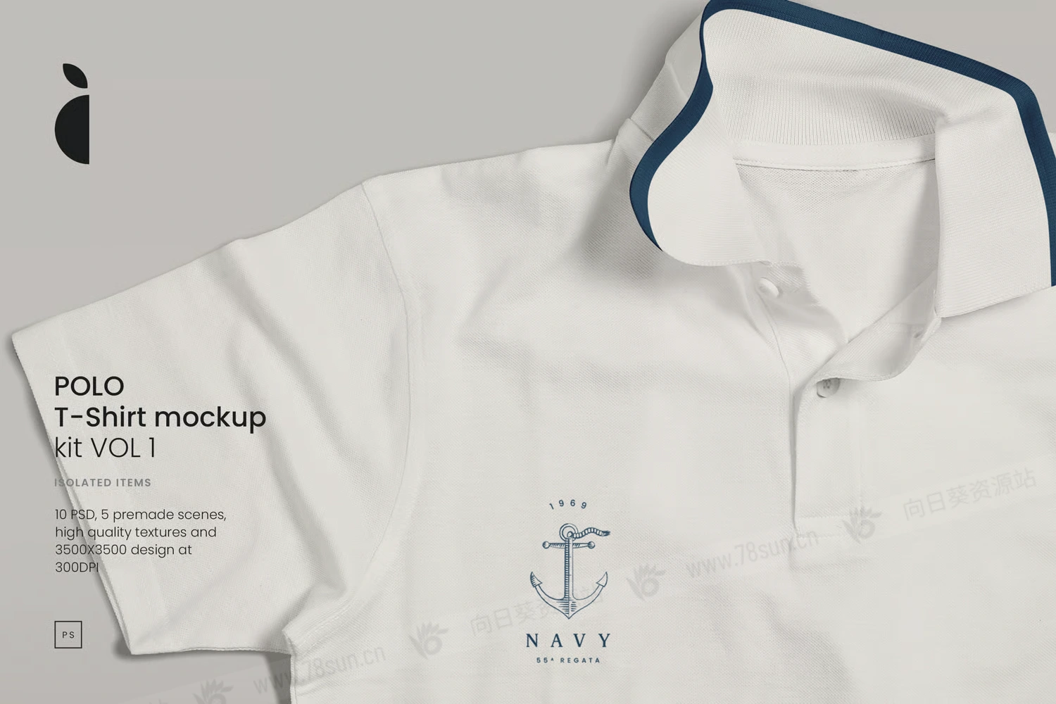 Polo衫T恤服装品牌VI效果图展示智能贴图psd设计样机,包括 10 个 PSD 模型(5 个预制场景),展示了一件 Polo 风格的 T 恤。高品质 3500x3500px 300dpi 设计,易于编辑。