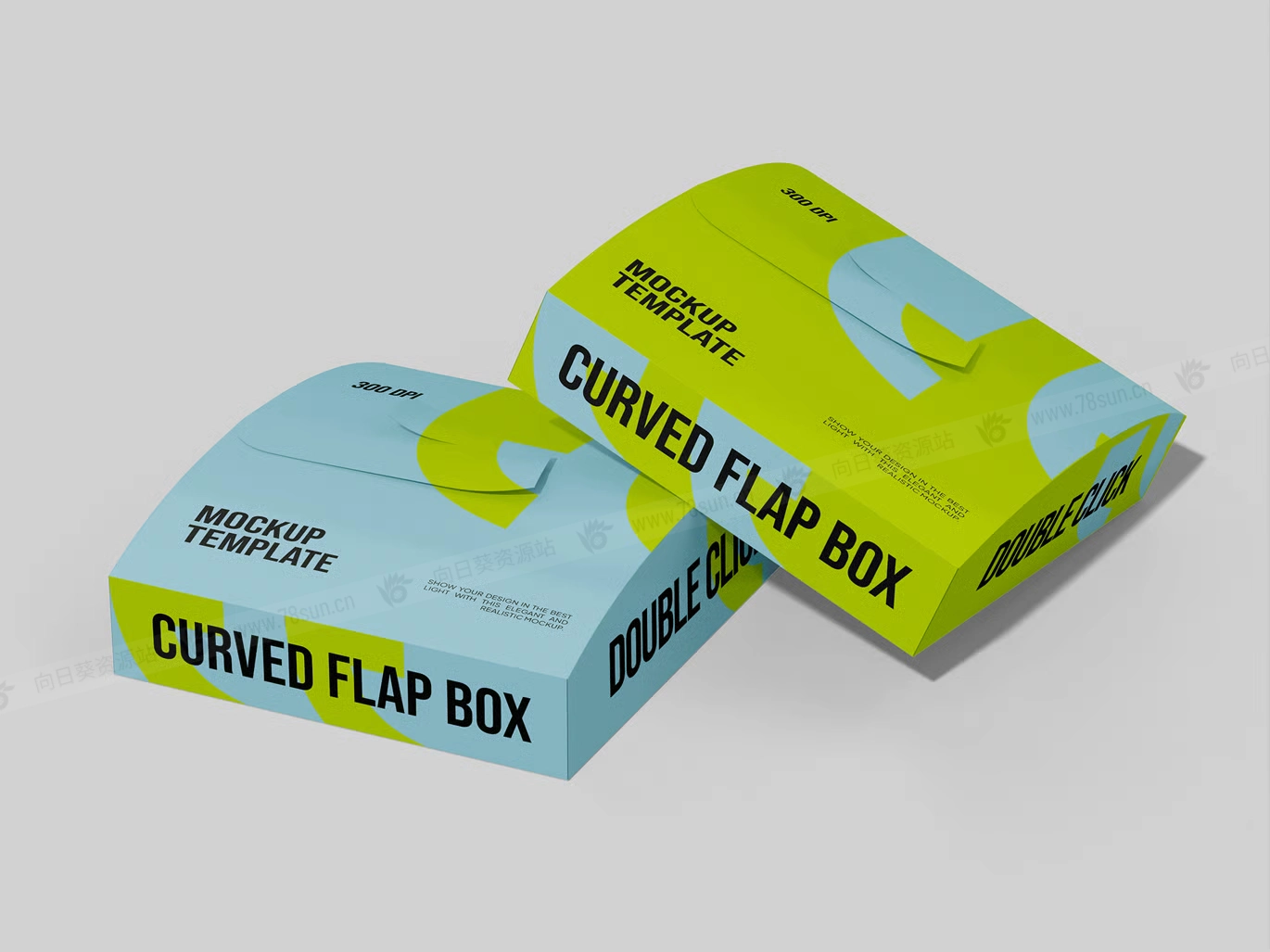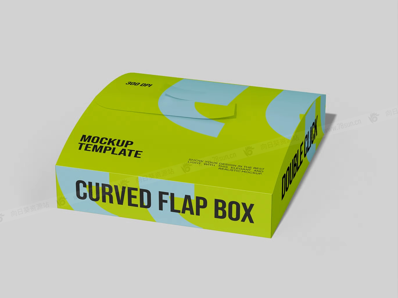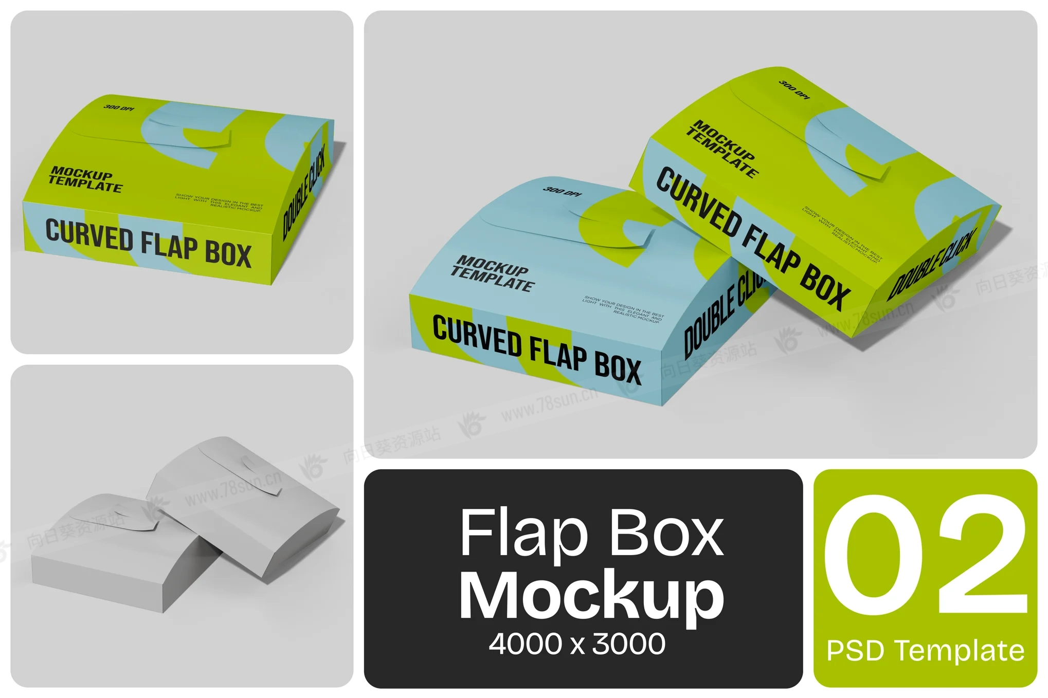 曲面翻盖包装纸盒品牌VI效果图展示智能贴图psd设计样机,非常适合展示优雅的包装、优质品牌或独特的结构设计。