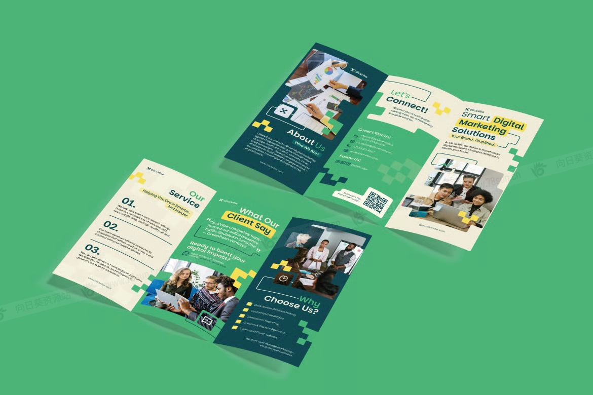 数字营销公司简介三折页宣传单小册子ai设计模板,
