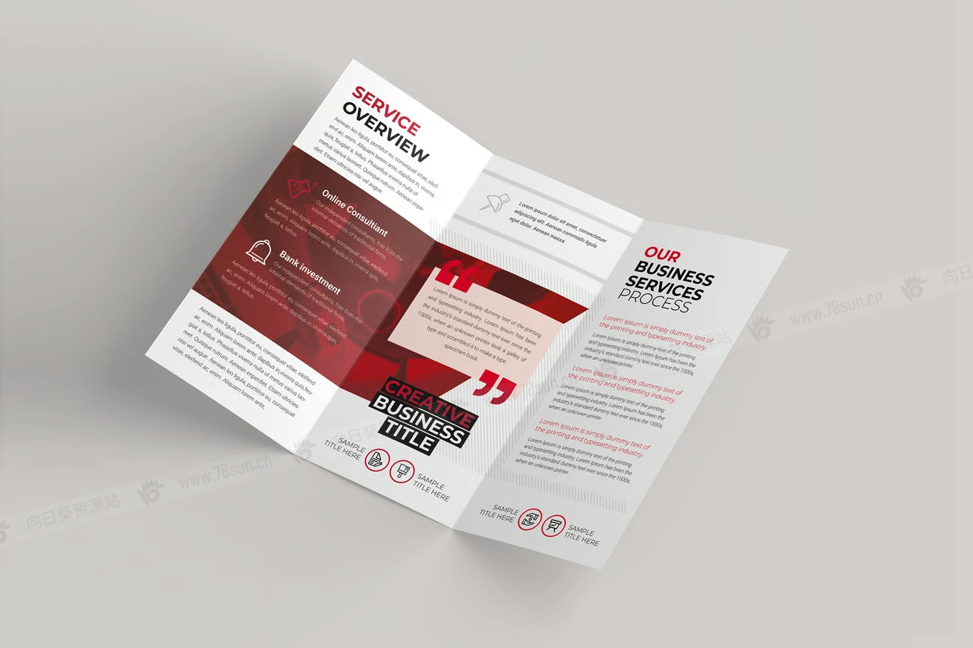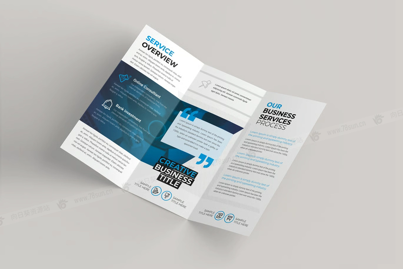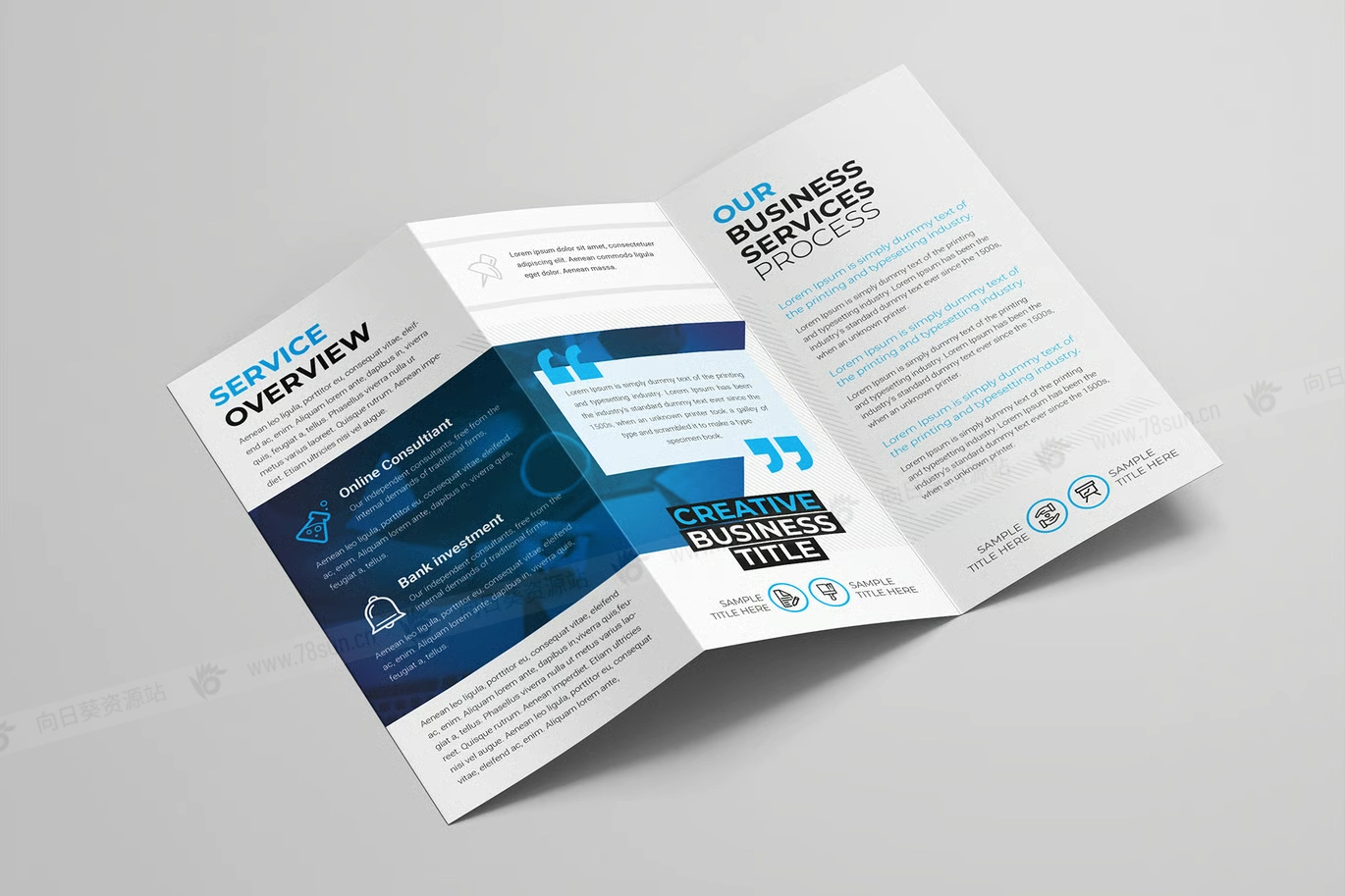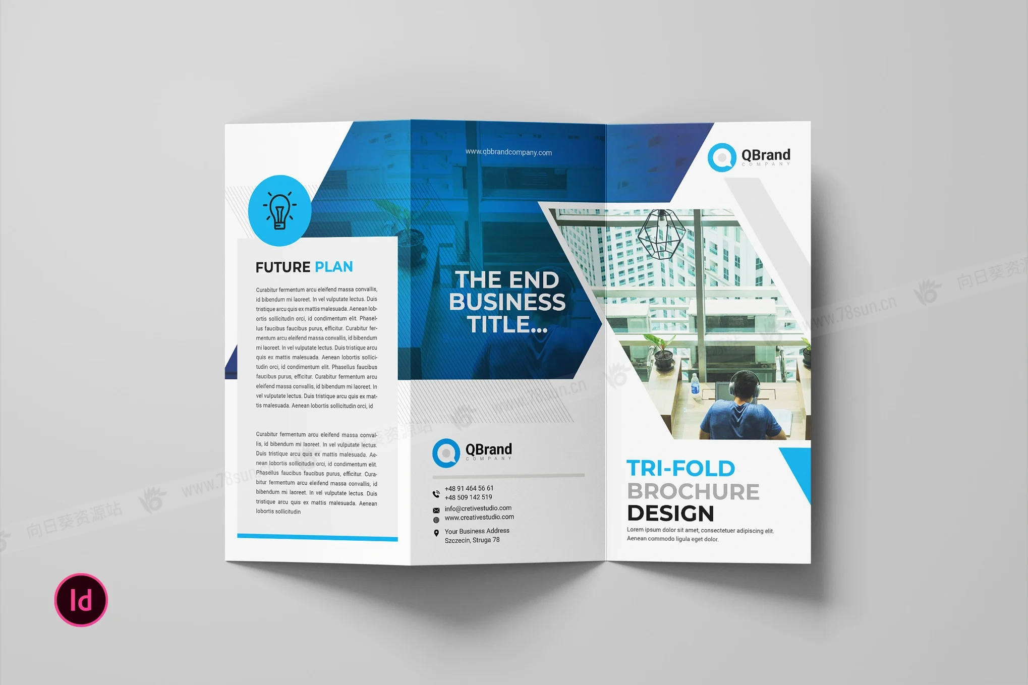 商务公司简介三折页宣传单小册子indd设计模板,易于编辑,便于理解。只需放入您自己的图像和文本,它就准备好了。