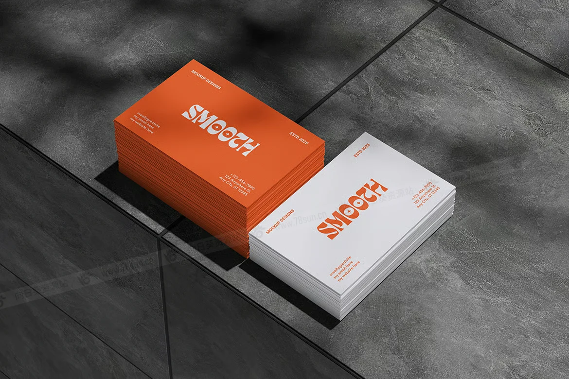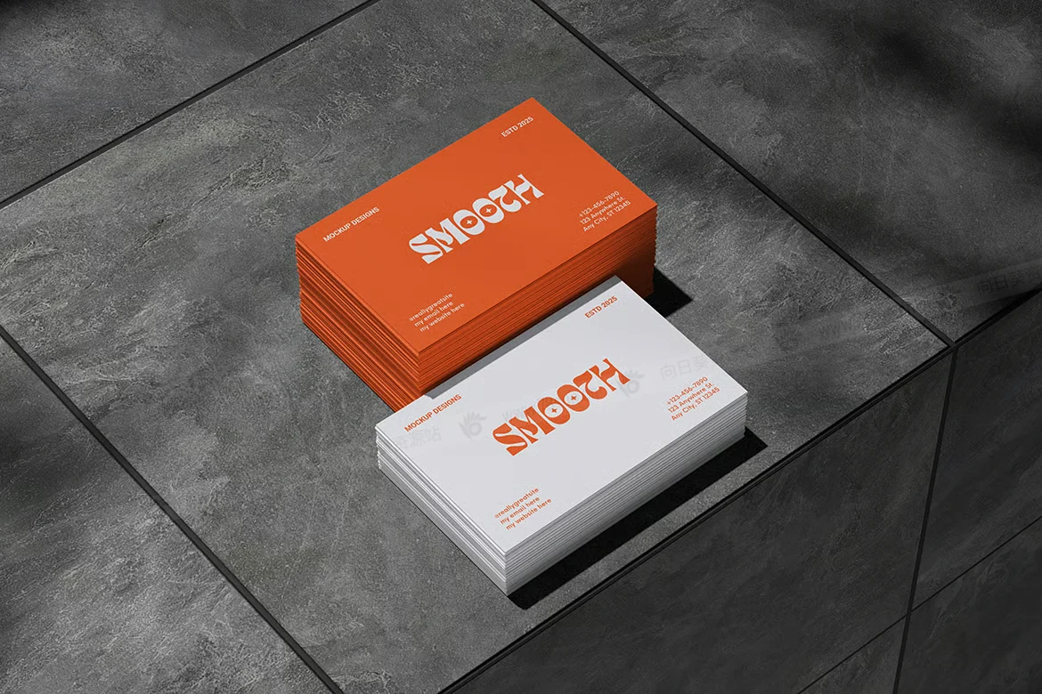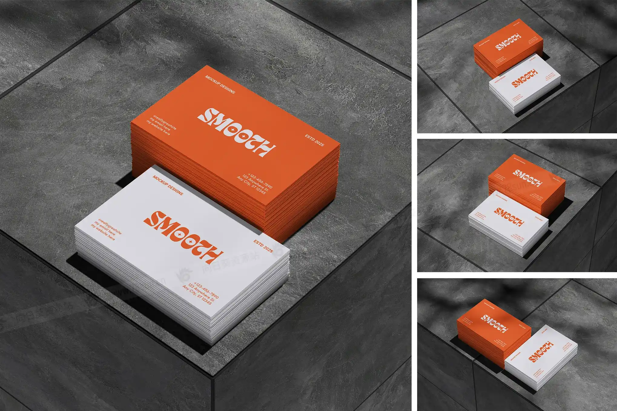 名片商业卡片品牌VI效果图展示智能贴图psd设计样机,此模型包括 4 个具有分层良好 PSD 文件,并且此模型还使用智能对象功能,这意味着您可以在几秒钟内轻松快速地使用自己的设计更改当前设计。