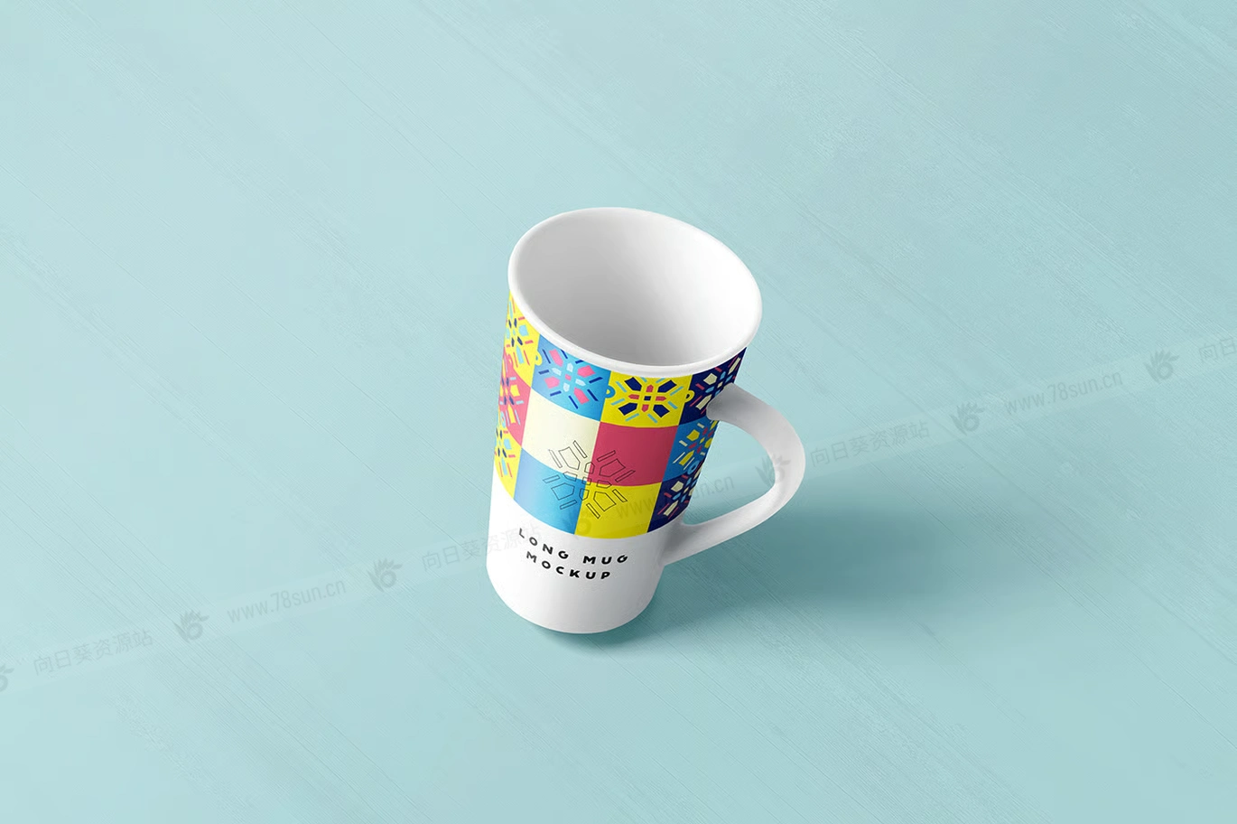 陶瓷马克杯品牌VI效果图展示智能贴图psd设计样机。这个杯子模型具有智能图层、逼真的照明和可定制的表面,