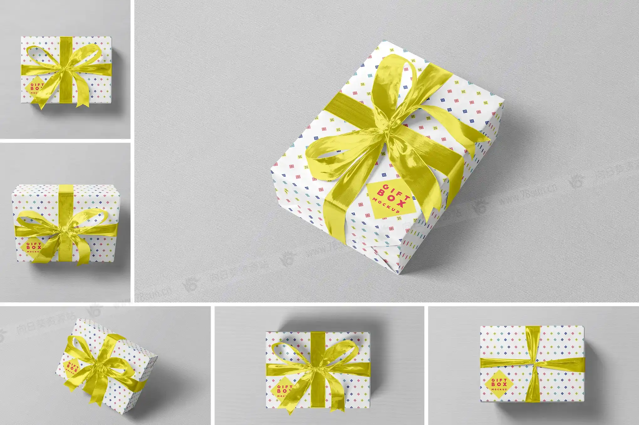 礼品盒品牌VI效果图展示智能贴图psd设计样机,具有智能对象图层、逼真的纹理和可编辑元素,可以精美地突出您的设计。