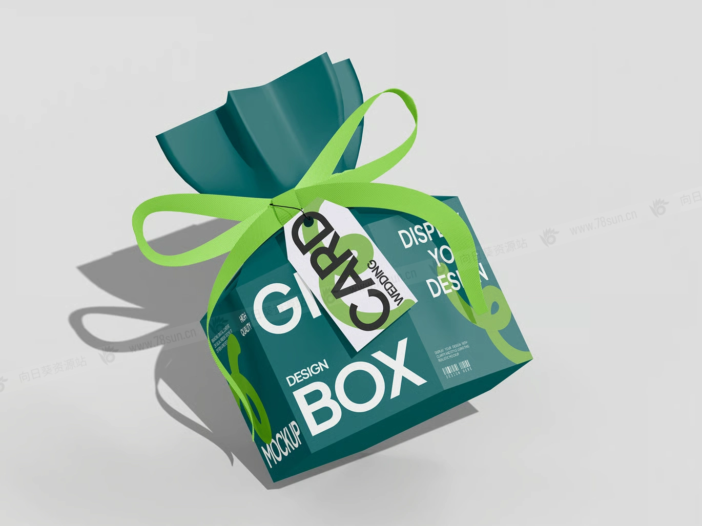 婚礼礼品盒品牌VI效果图展示智能贴图psd设计样机,非常适合作为婚礼礼品、特殊活动礼物、精品包装或高级纪念品。突出了盒子的优质纹理、丝带细节、照明和完全可定制的设计区域。