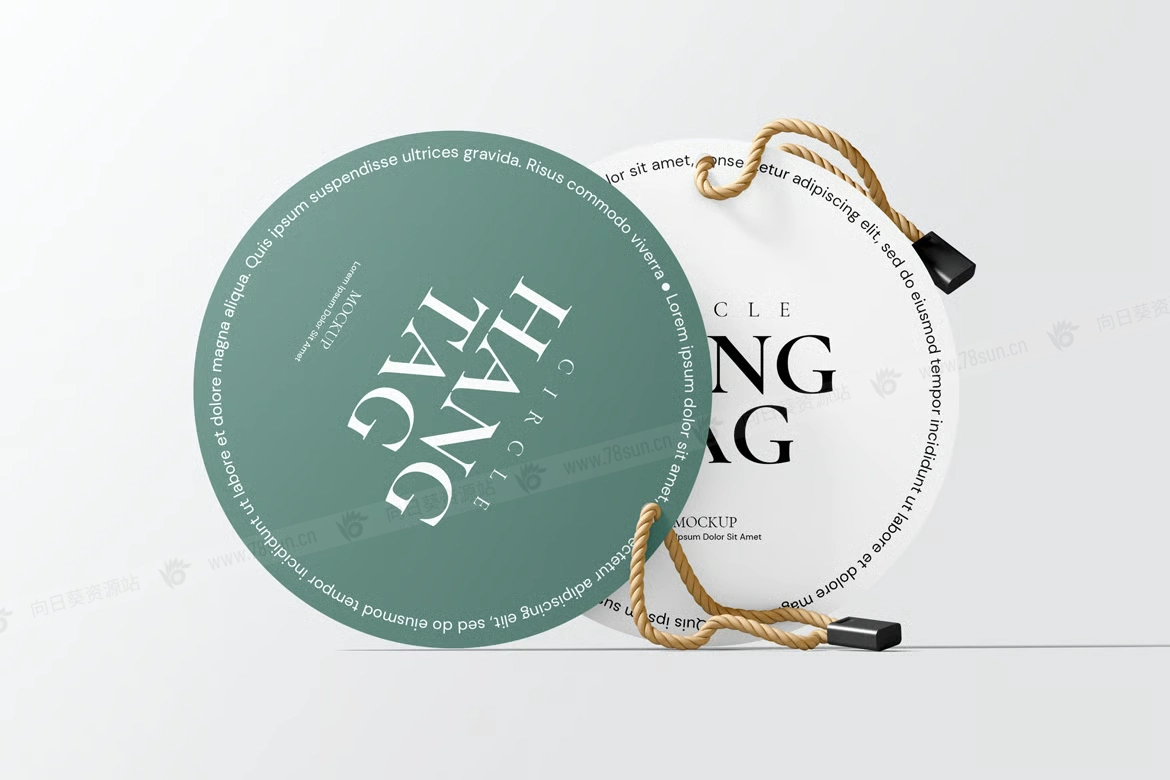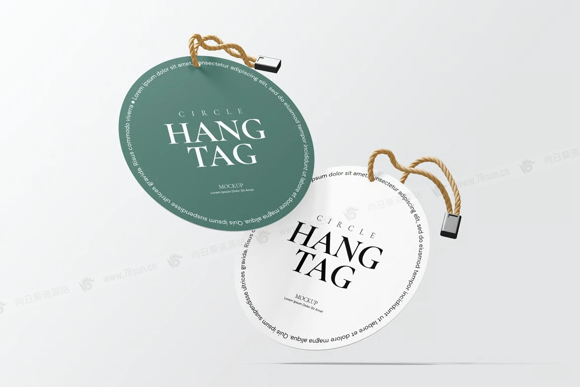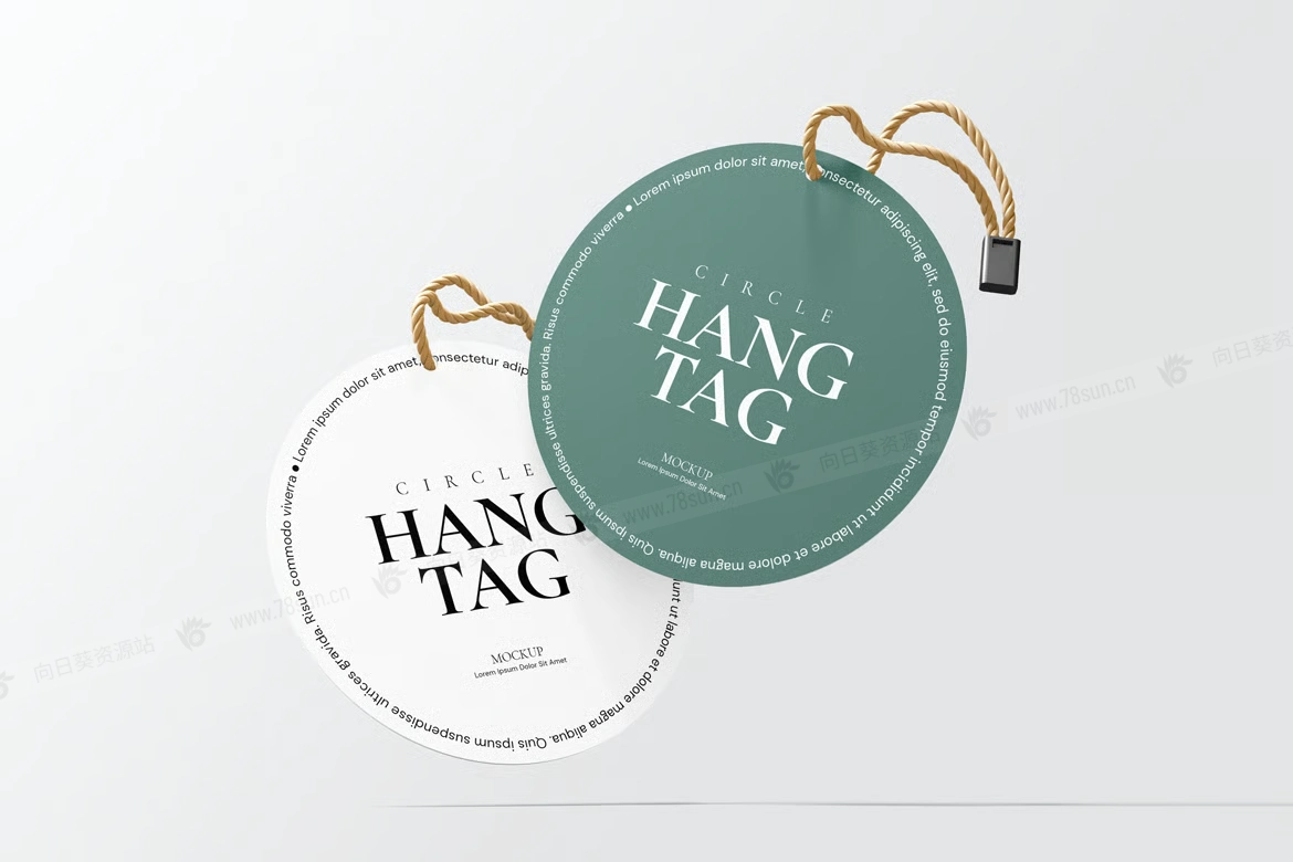 圆形服装吊牌标签品牌VI效果图展示智能贴图psd设计样机,