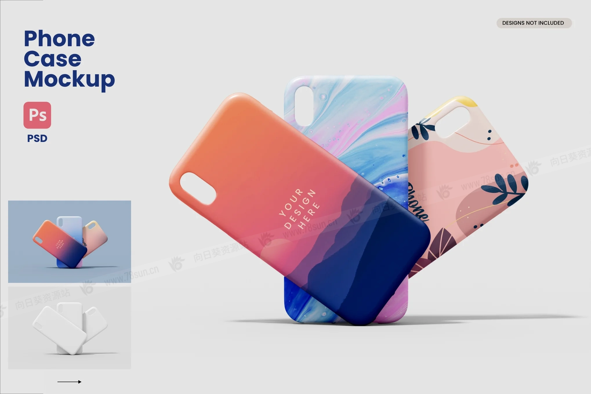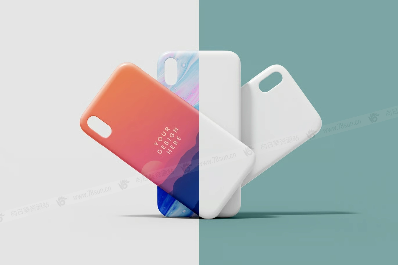 手机壳品牌VI效果图展示智能贴图psd设计样机,预览中的设计不包括在内,仅用于显示目的。