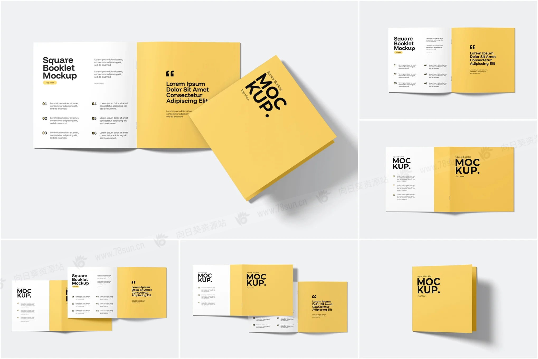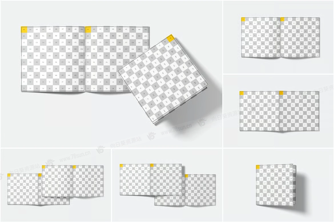 方形书籍小册子封面内页VI效果图展示智能贴图psd设计样机,