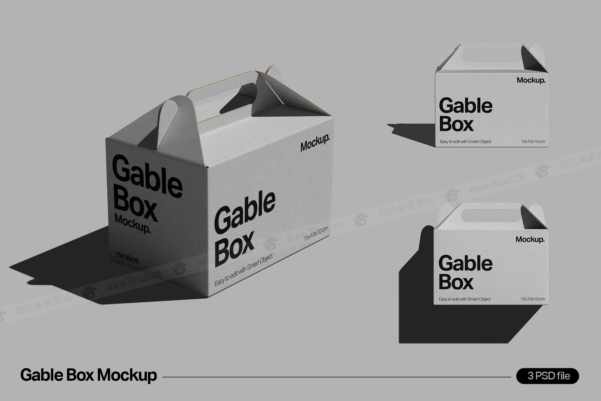 山墙盒子食品包装纸盒品牌VI效果图展示智能贴图psd设计样机,完全可定制和高质量的 Gable Box 模型,为您的定制设计做好准备。