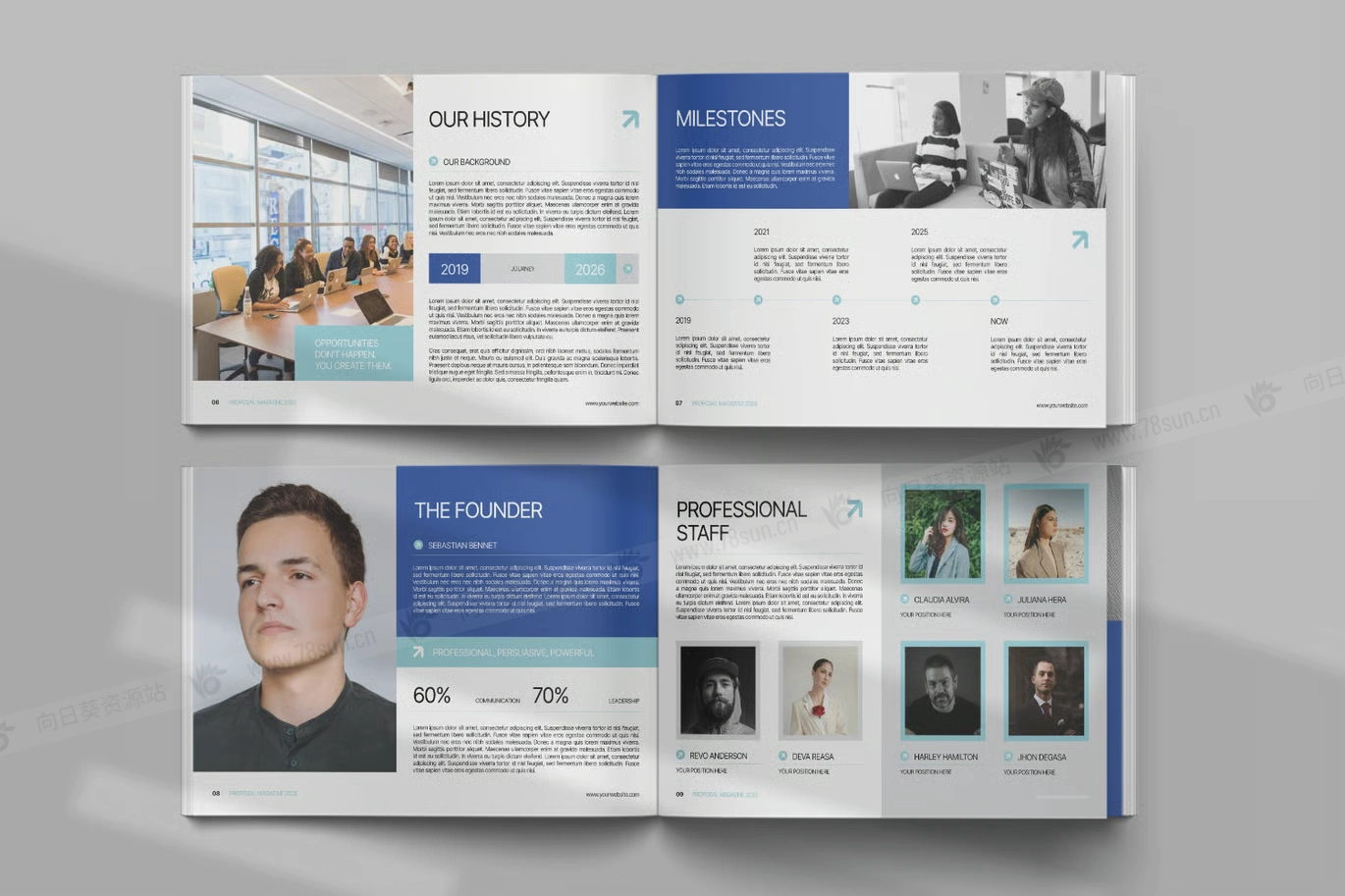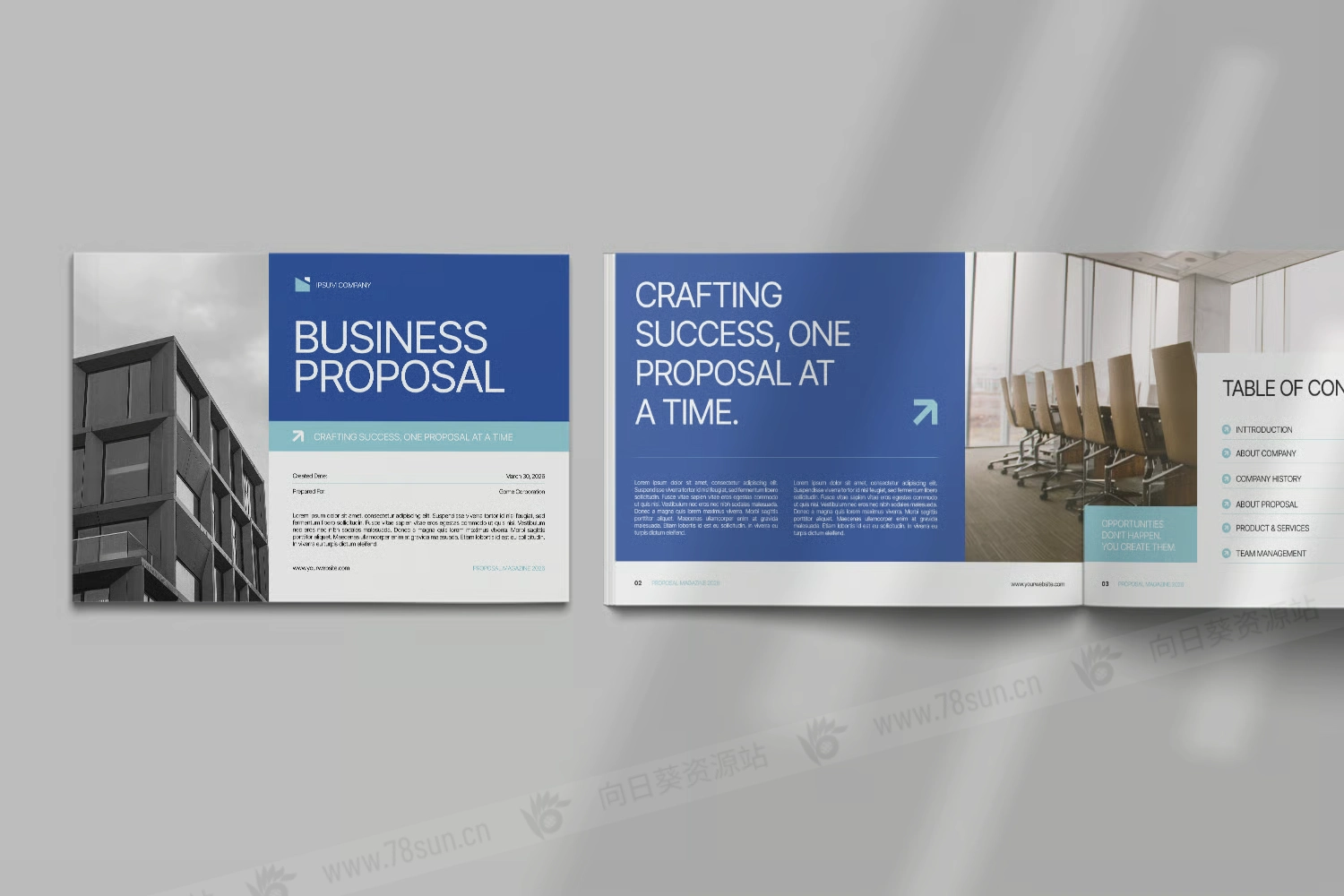 横版公司简介项目提案小册子杂志宣传册画册indd设计模板。易于编辑,便于理解。只需放入您自己的图像和文本,它就准备好了。