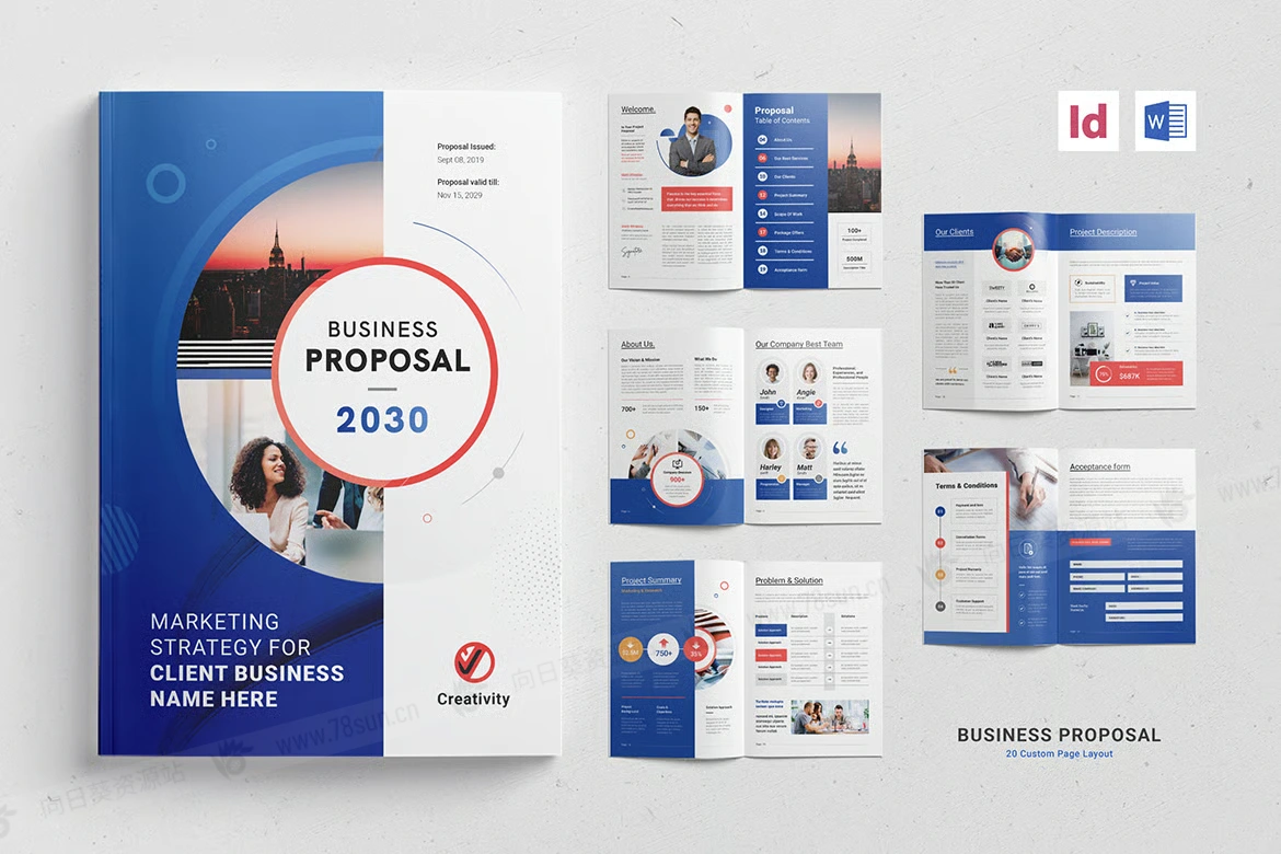 公司简介项目提案小册子杂志宣传册画册indd docx pdf设计模板,所有内容都是可编辑的,并且可以一键更改颜色。