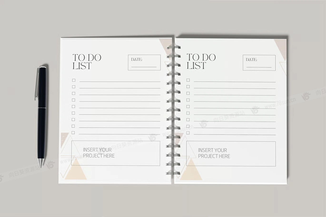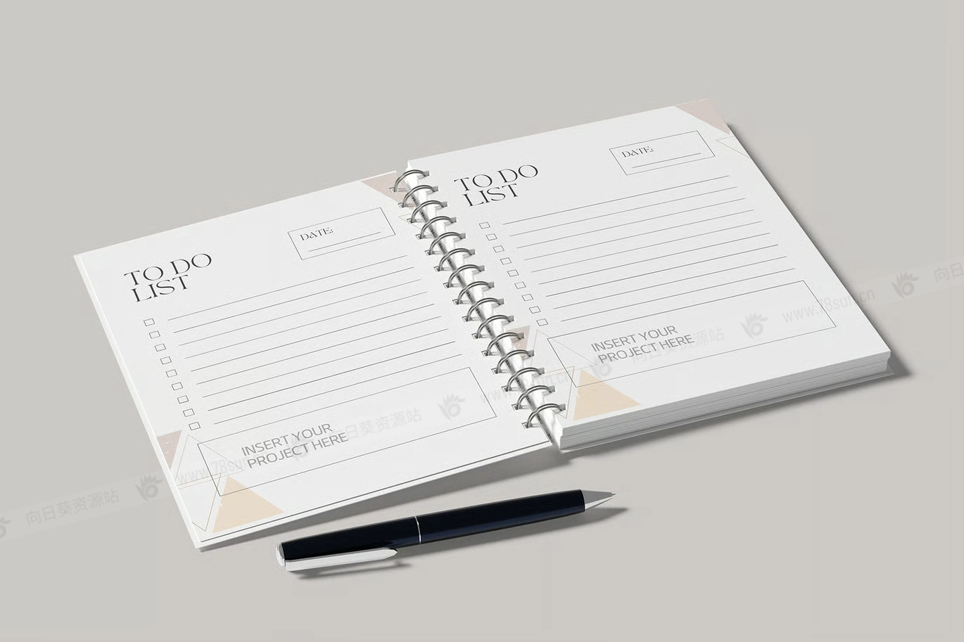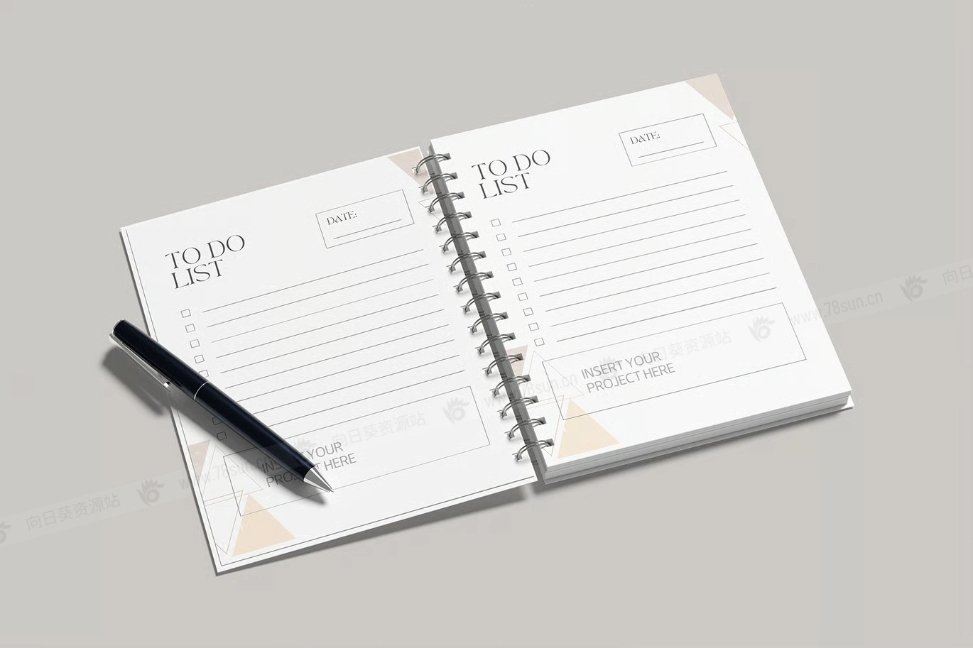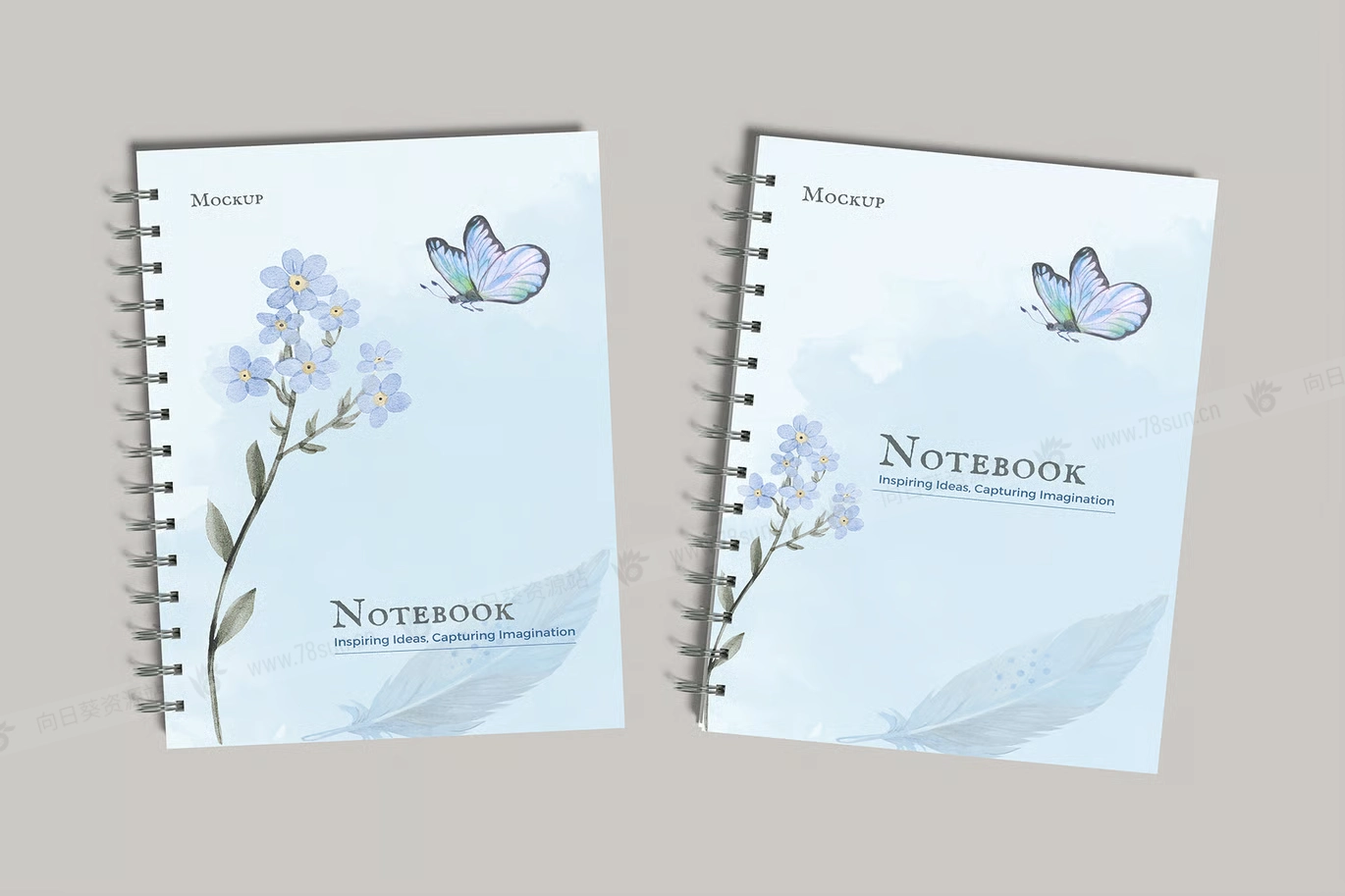 A5线圈装订螺旋日记笔记本品牌VI效果图展示智能贴图psd设计样机!在几秒钟内为您的客户创建一个逼真的 A5 螺旋笔记本模型展示。这些 PSD 文件使用智能对象功能,因此您可以轻松快速地替换模型内容。这很容易!您只需双击智能对象,粘贴您的作品,保存,即可完成。