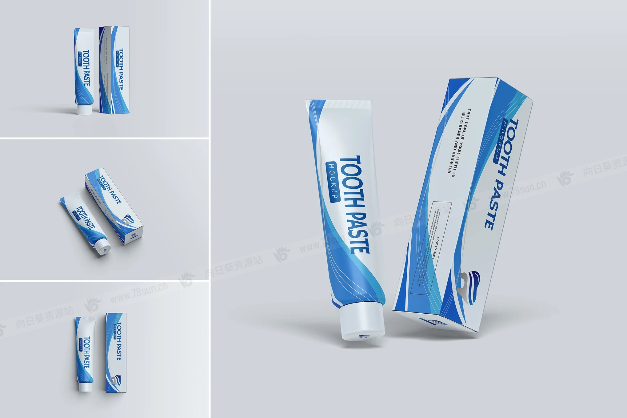 牙膏膏药软管包装纸盒品牌VI效果图展示智能贴图psd设计样机!在几秒钟内为您的客户创建逼真的剪贴板菜单模型。此 PSD 文件使用智能对象功能,因此您可以轻松快速地更改模型内容。非常简单!您只需双击 Smart-Object,粘贴您的作品,保存它,然后就完成了。