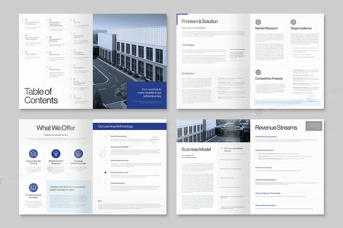 学校教育大学招生简章年度报告小册子杂志宣传册画册indd设计模板,一种非常适合学校、学院、大学校园、教育机构和学术项目的综合布局。此模板提供 Canva、InDesign IDML 和 INDD 格式,