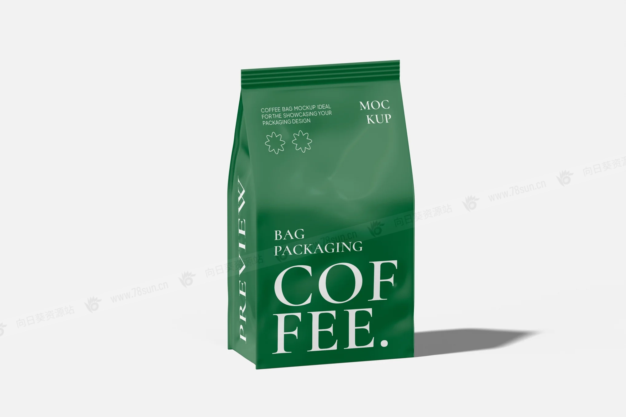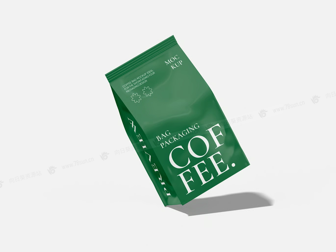 站立式咖啡包装袋品牌VI效果图展示智能贴图psd设计样机。这款模型采用简洁的布局和逼真的细节设计,以专业的优势突出您的徽标、标签或包装设计。使用智能对象图层轻松交换您的图稿。
