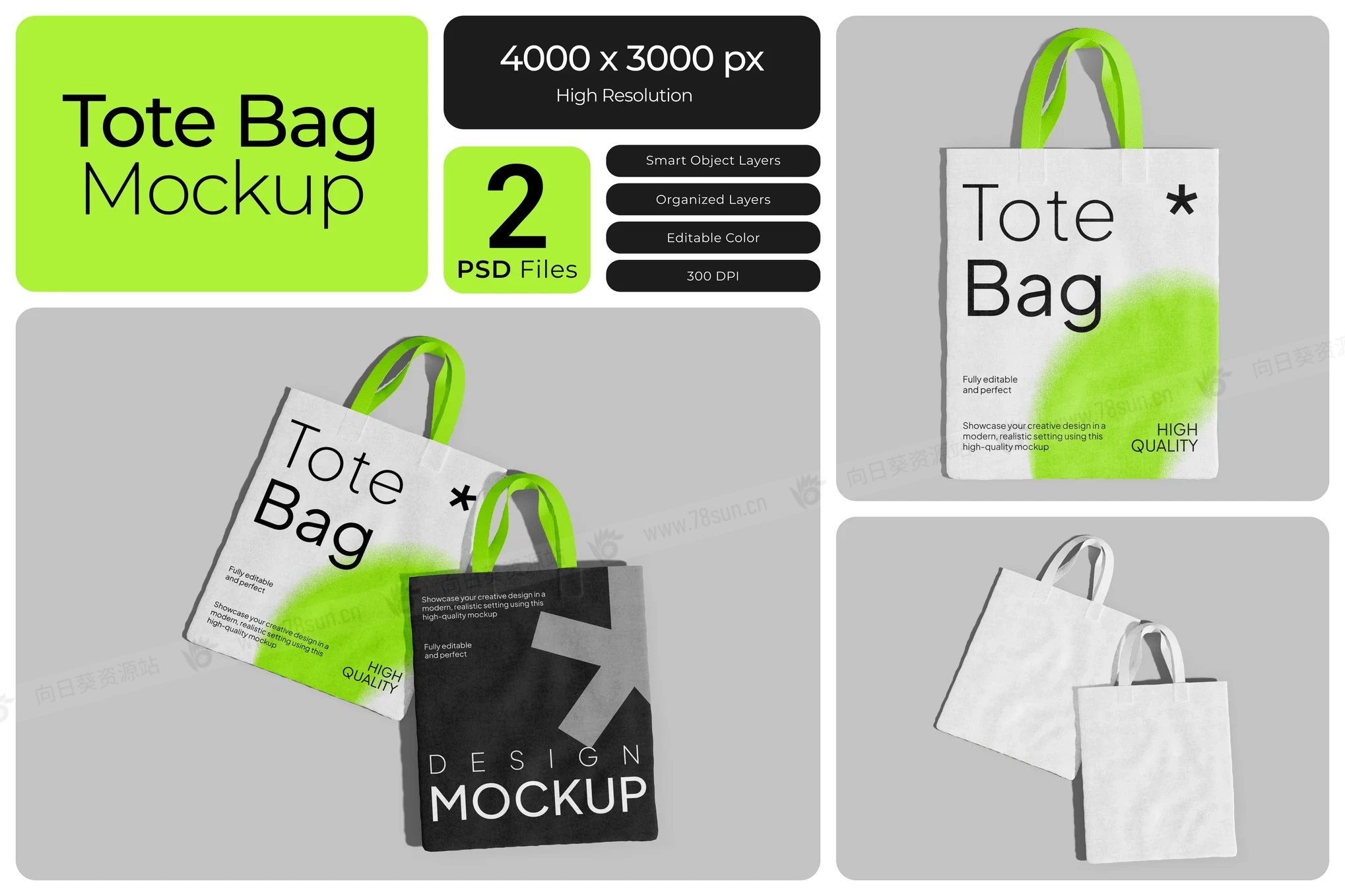 帆布托特包手提袋购物袋品牌VI效果图展示智能贴图psd设计样机,