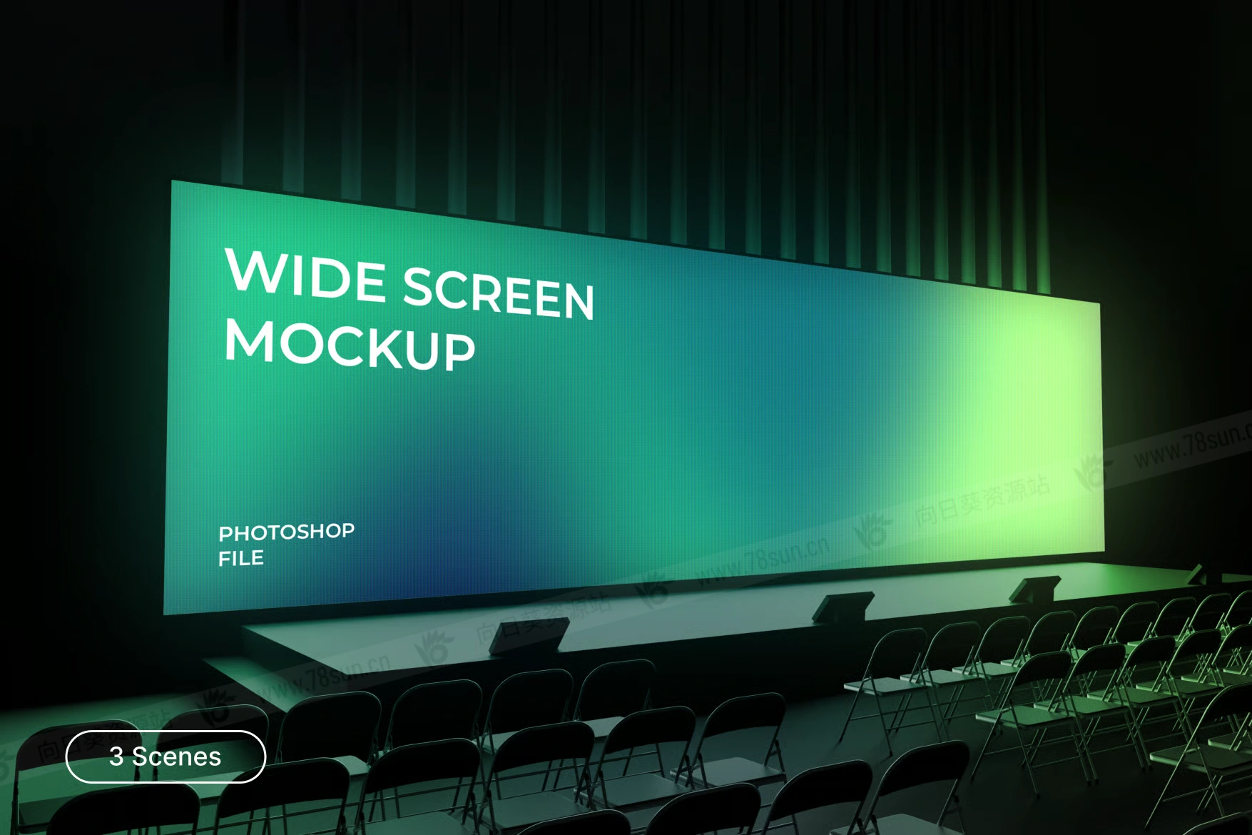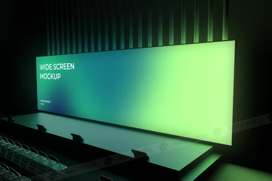 会议厅LED演示屏幕VI效果图展示智能贴图psd设计样机,非常适合展示您的广告、品牌视觉或促销内容,