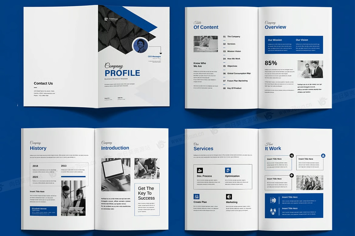 公司简介项目提案小册子杂志宣传册画册indd设计模板,旨在突出您品牌的使命、服务、团队和成就。它采用简洁的排版、现代的结构和引人注目的视觉效果,