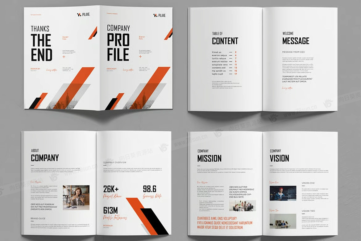 公司简介项目提案小册子杂志宣传册画册indd设计模板,旨在突出您品牌的使命、服务、团队和成就。它采用简洁的排版、现代的结构和引人注目的视觉效果,