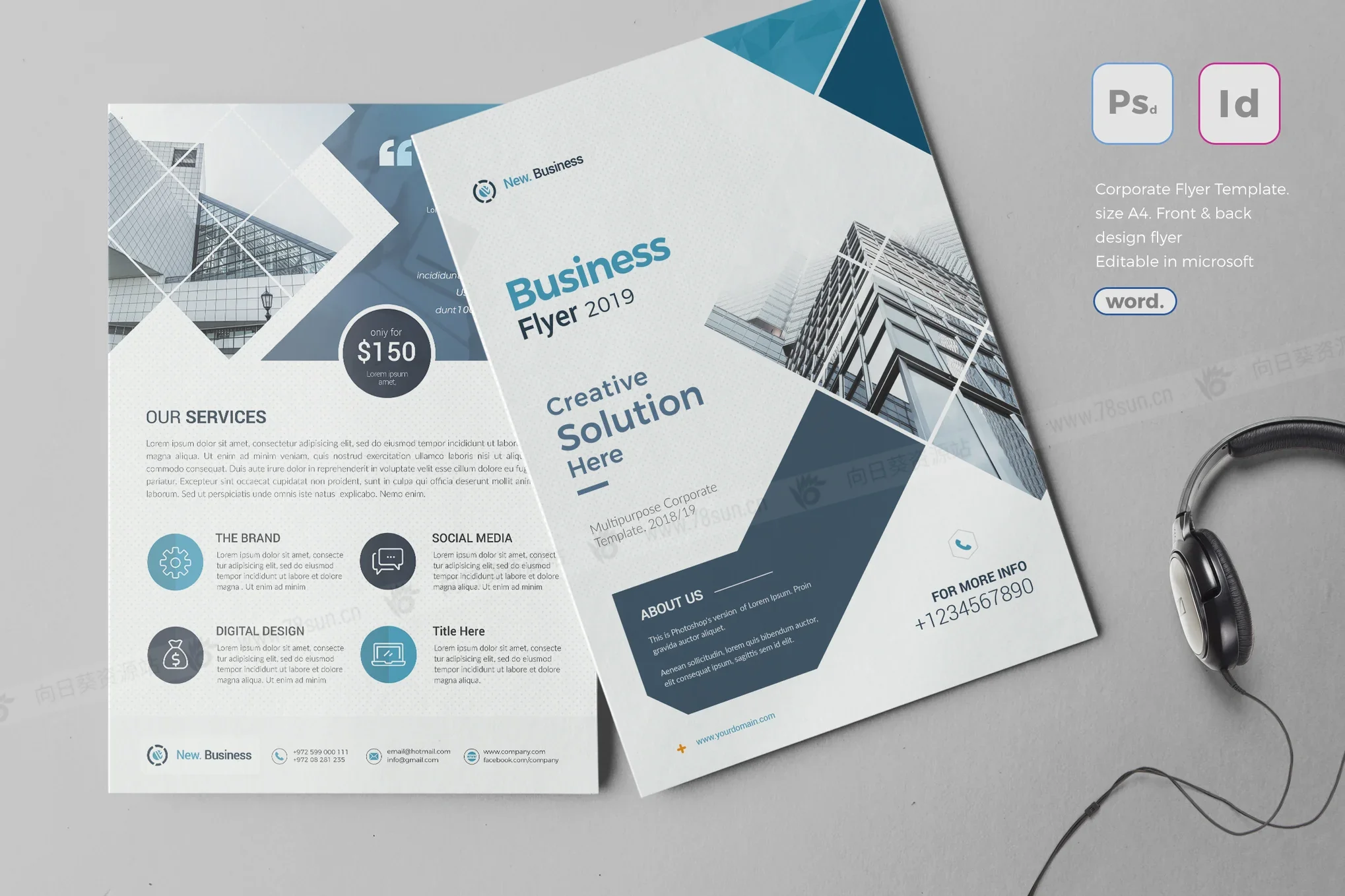 商务企业宣传活动传单海报psd indd docx设计模板。此布局适用于任何项目目的。非常易于使用和定制。