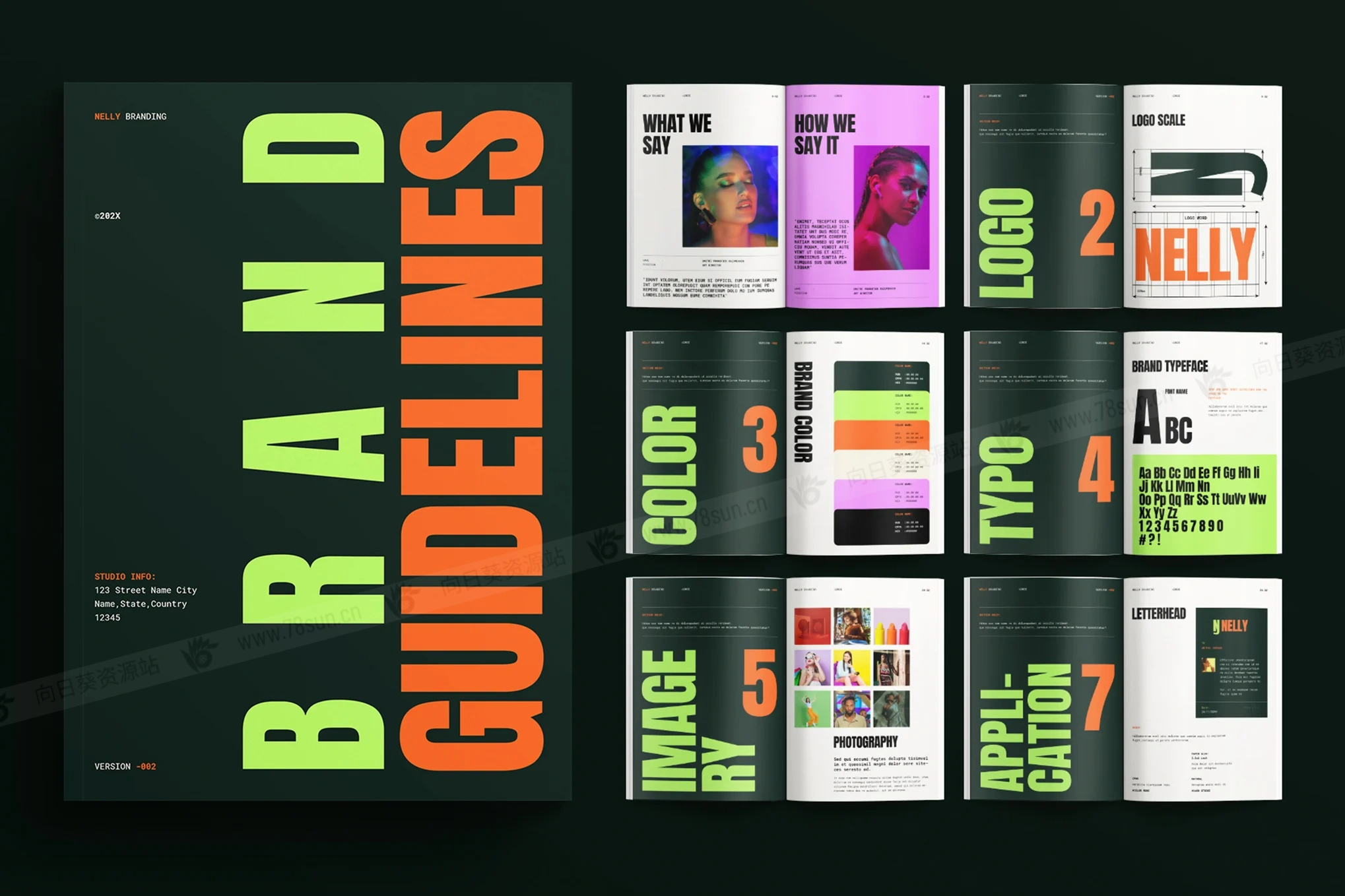 品牌识别指南手册小册子杂志宣传册画册indd设计模板。此 32 页版面专为 Adobe InDesign 设计,非常适合定义品牌策略、徽标使用、颜色系统、排版规则等。这个完全可编辑的模板有 A4 和 US Letter 两种尺寸,可打印,并使用基于网格的系统构建,以实现精度和结构。