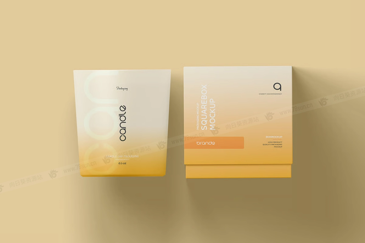 蜡烛香薰罐包装纸盒品牌VI效果图展示智能贴图psd设计样机,