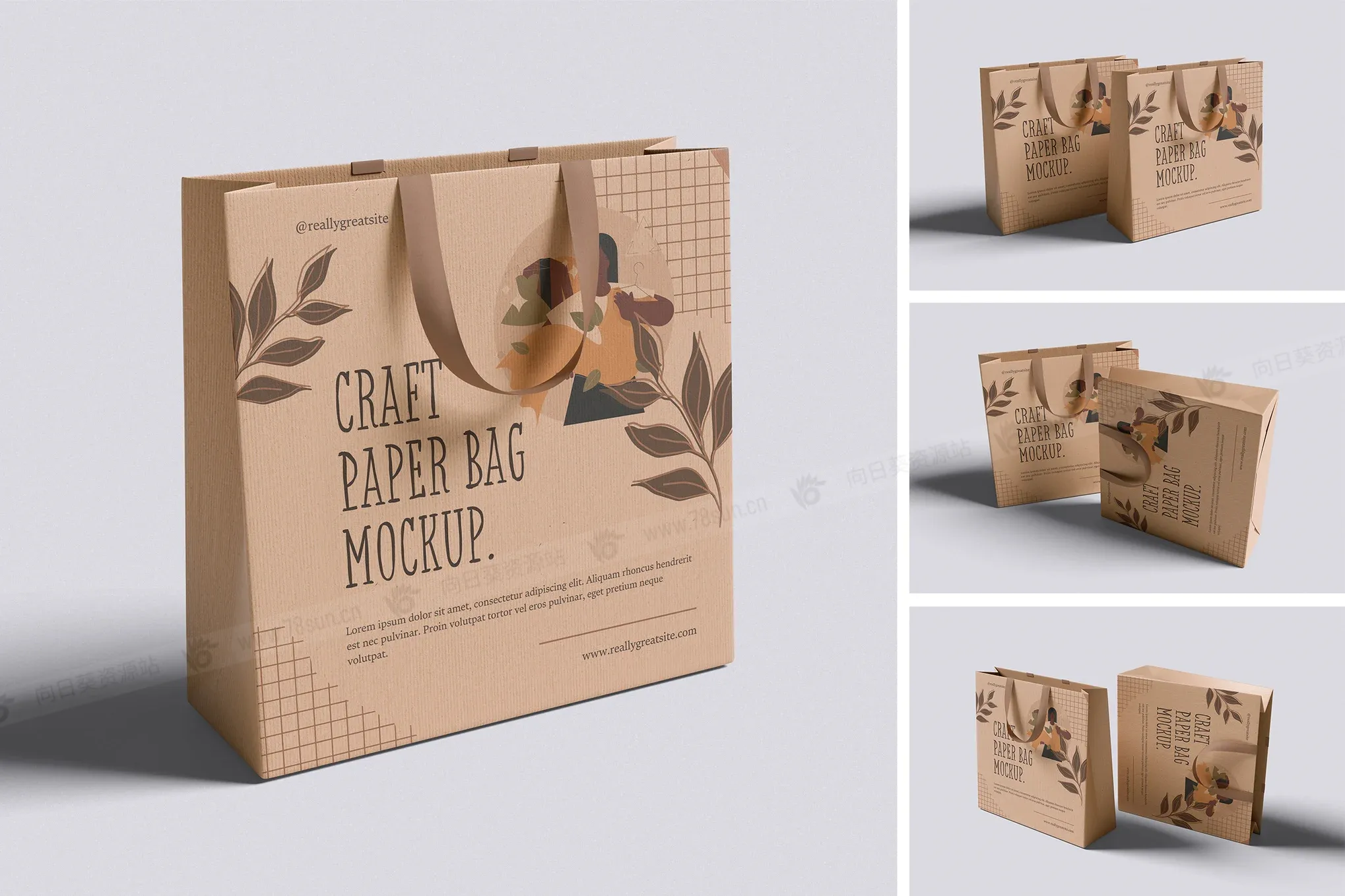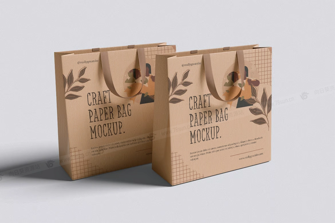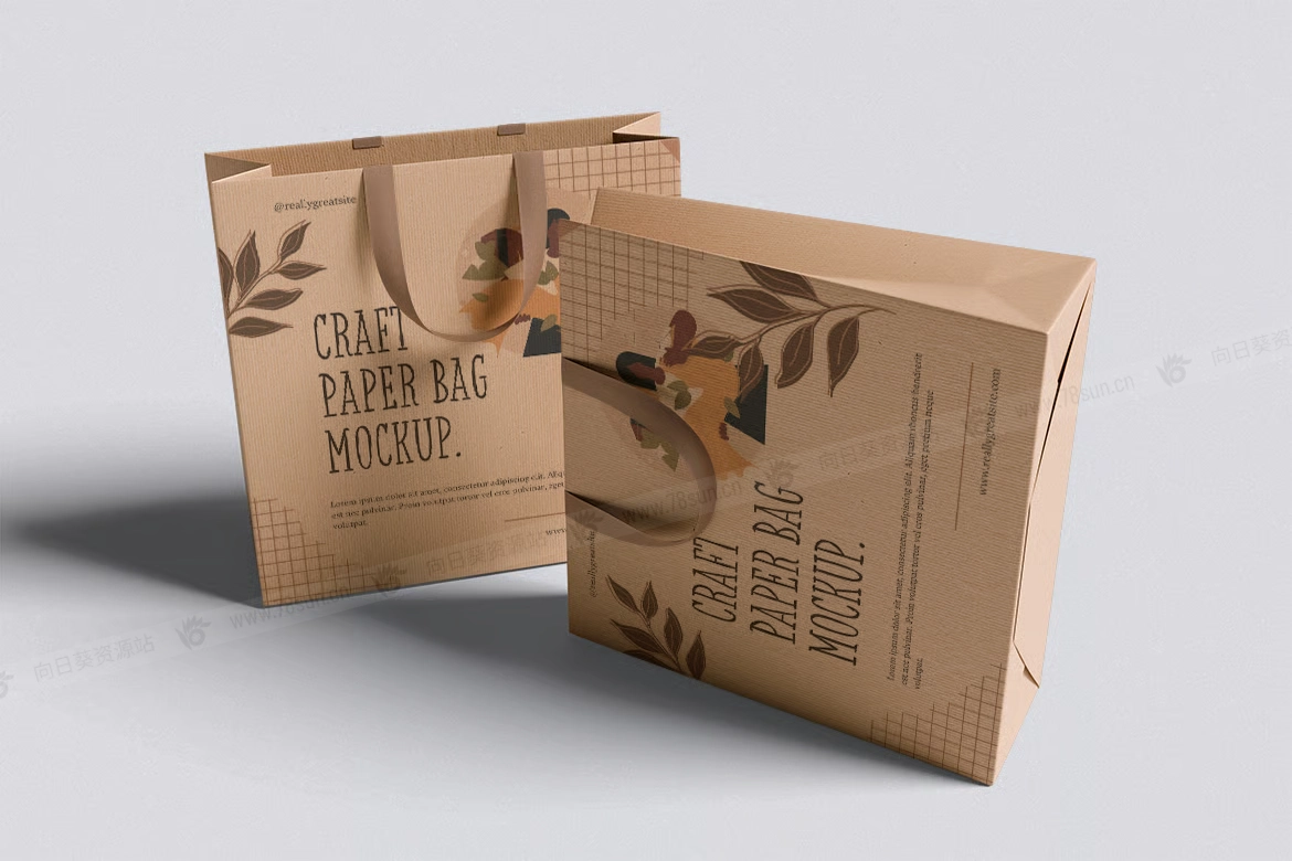纸质手提袋购物袋品牌VI效果图展示智能贴图psd设计样机。此模型包括 4 个具有分层良好 PSD 文件,并且此模型还使用智能对象功能,这意味着您可以在几秒钟内轻松快速地使用自己的设计更改当前设计。