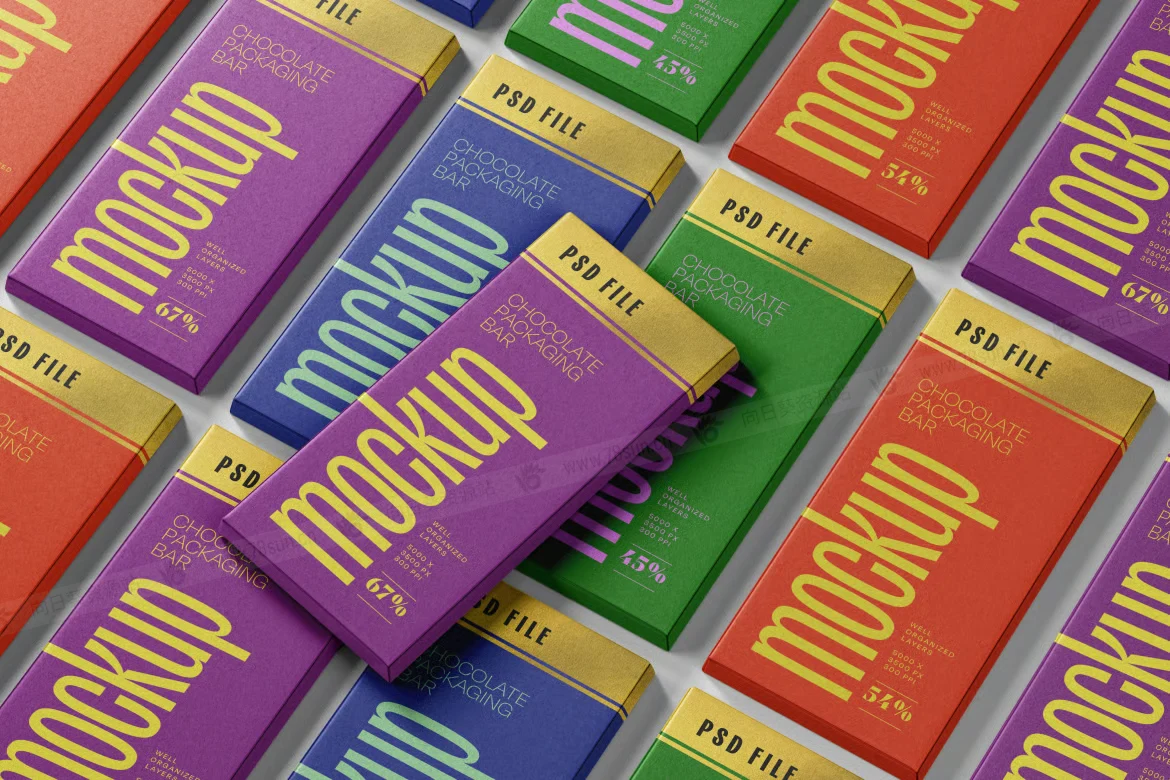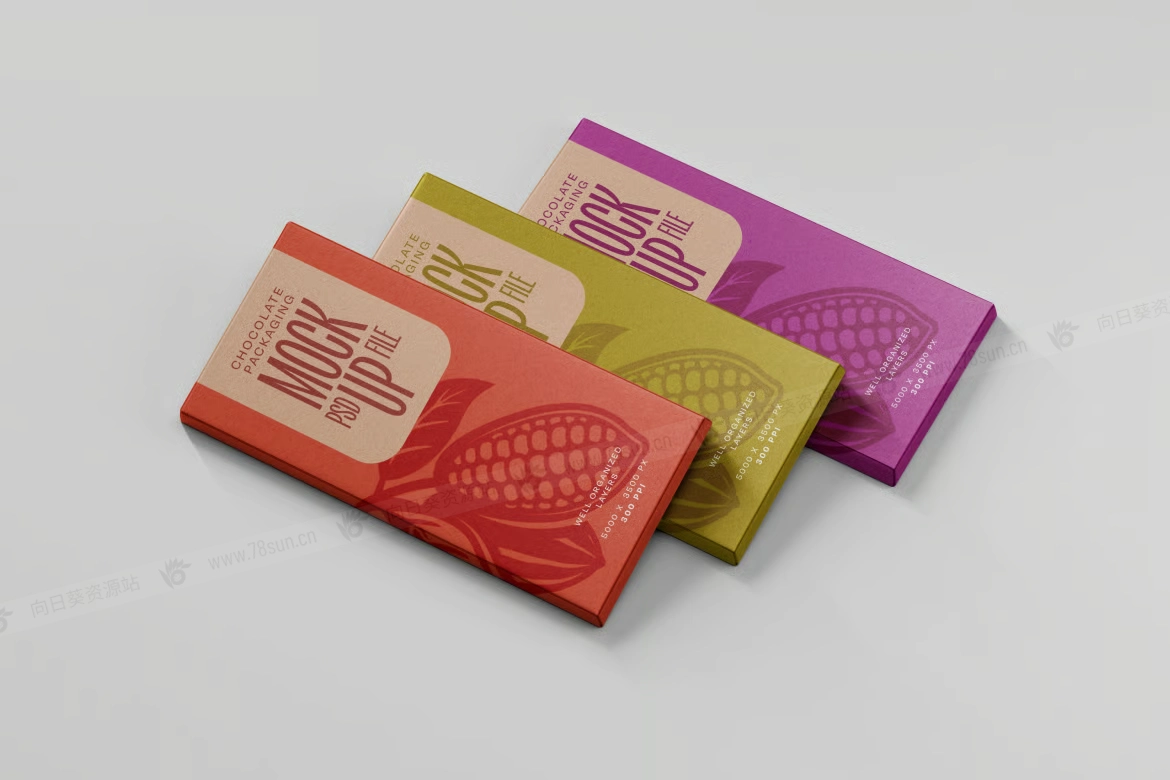 巧克力棒包装纸盒品牌VI效果图展示智能贴图psd设计样机,