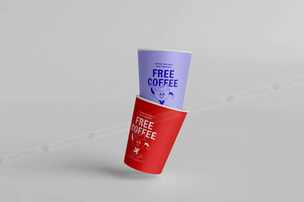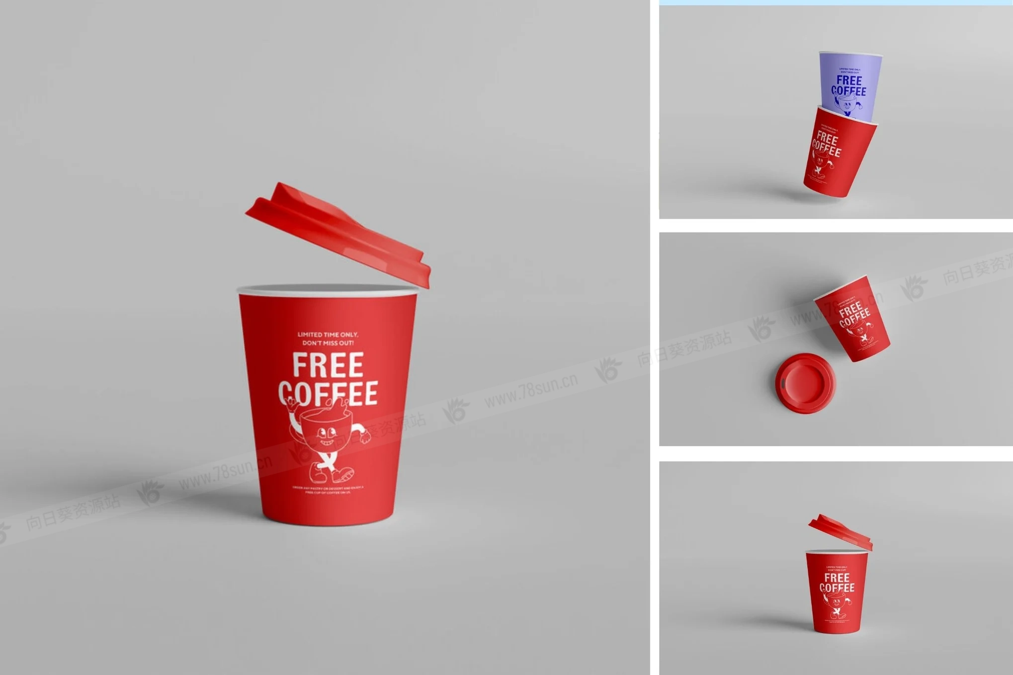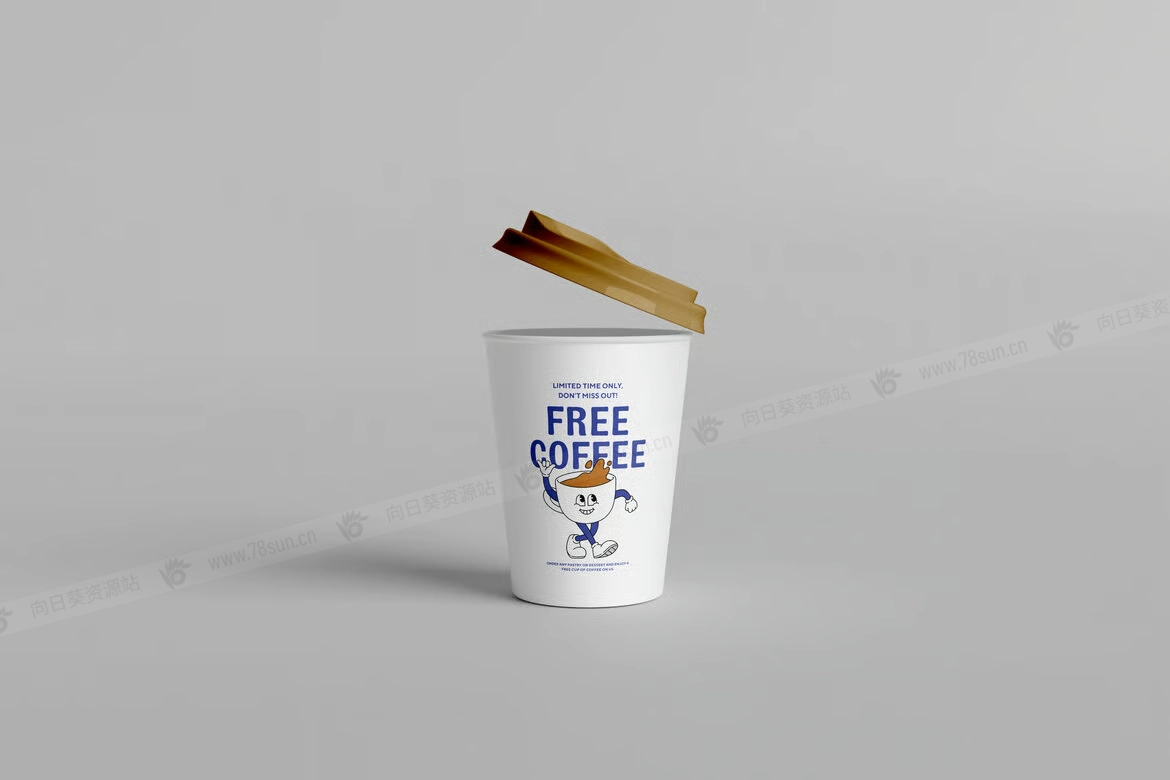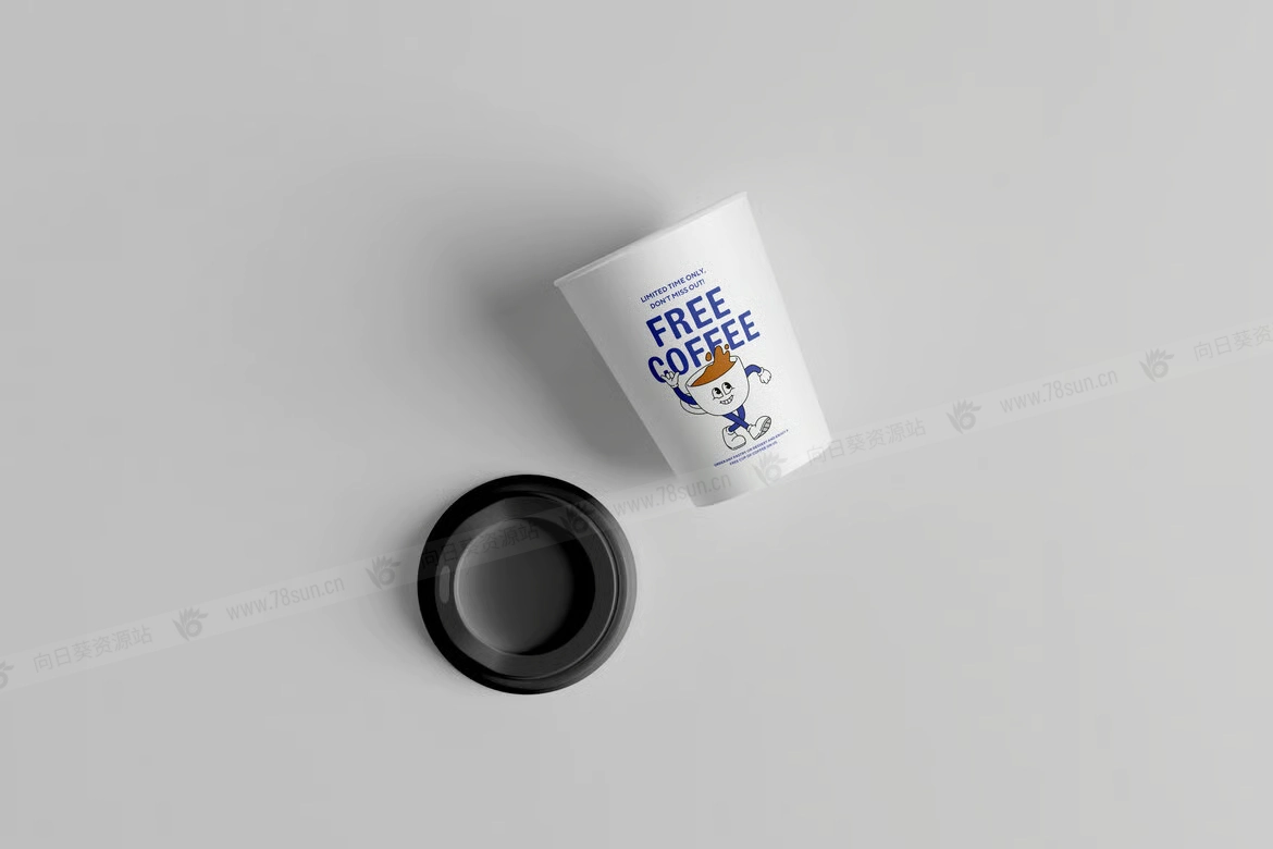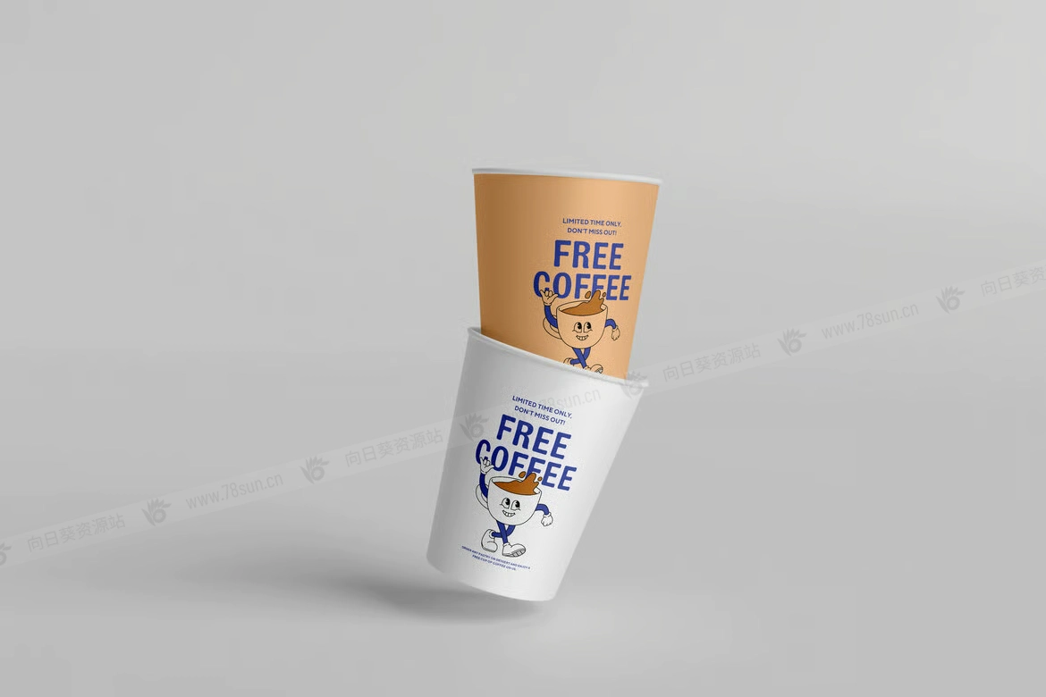咖啡杯纸杯品牌VI效果图展示智能贴图psd设计样机。只需使用智能对象拖放您的设计即可轻松定制。