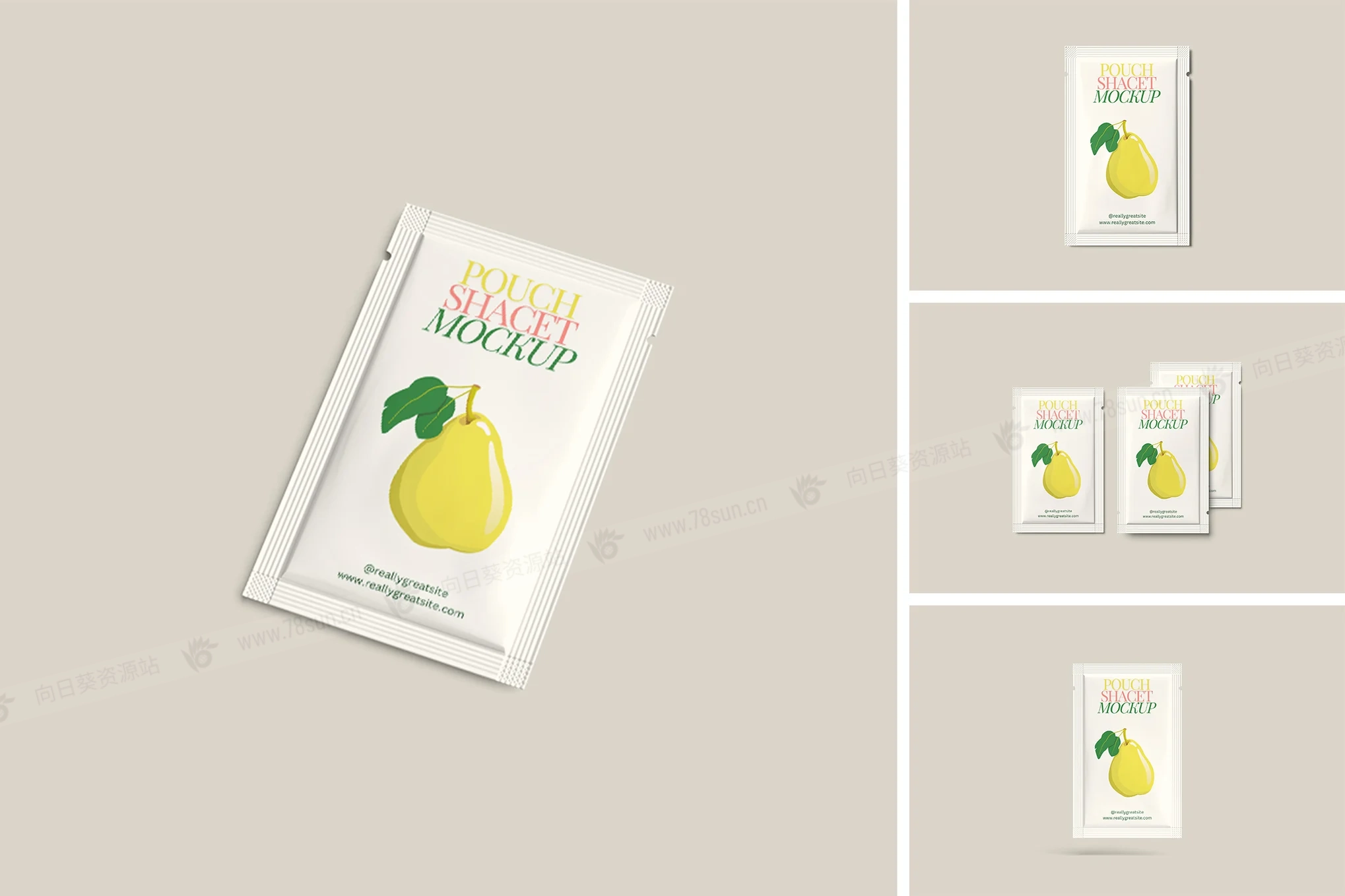 粉末食品包装小袋品牌VI效果图展示智能贴图psd设计样机。该模型包括 4 个带有分层良好 PSD 文件,并且该模型还使用智能对象功能,这意味着您可以在几秒钟内轻松快速地使用自己的设计更改当前设计。