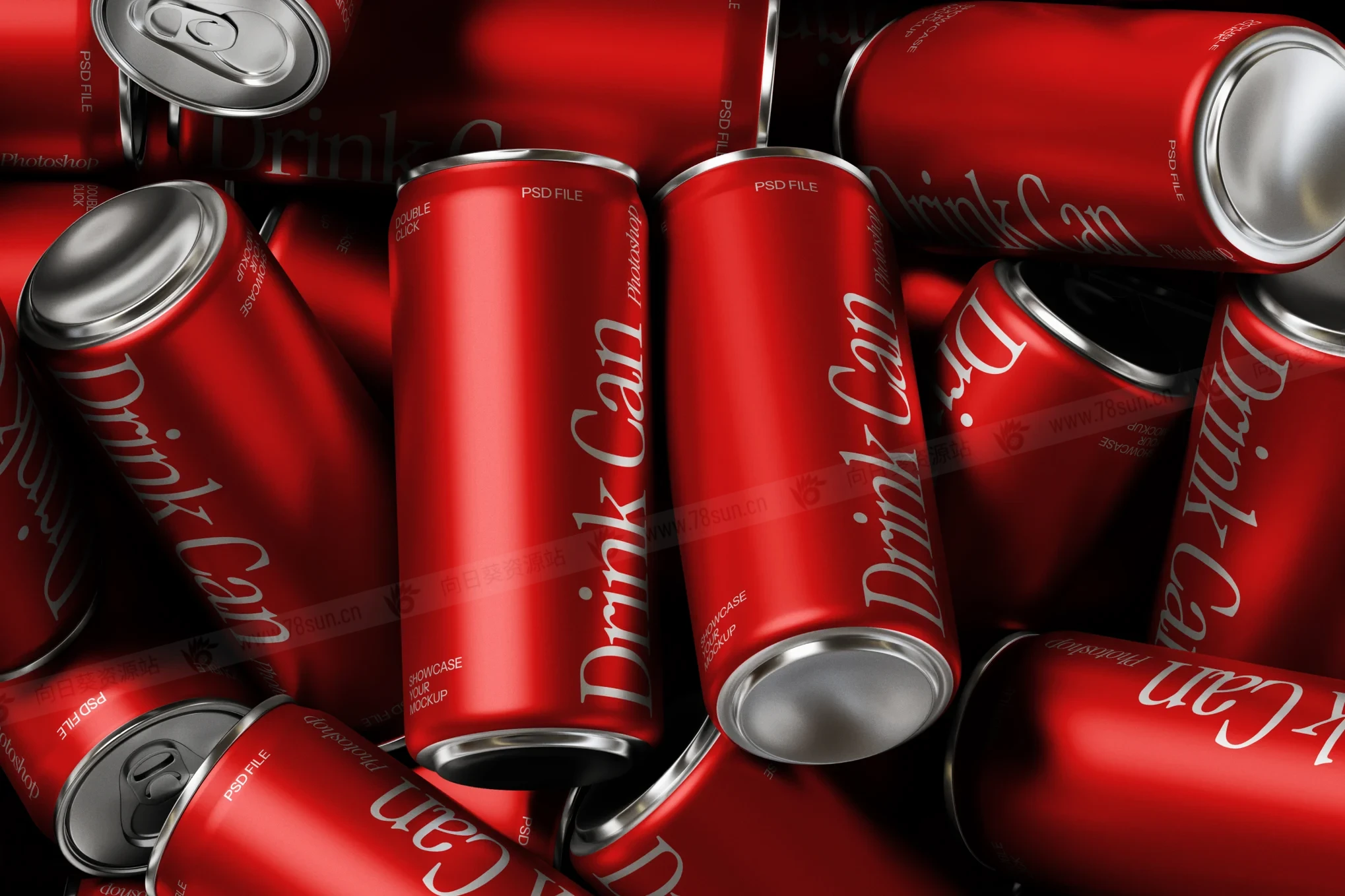 汽水饮料易拉罐头品牌VI效果图展示智能贴图psd设计样机。该系列包括多个锡罐视角,非常适合展示能量饮料、软饮料、果汁和冷萃咖啡标签。这款用于饮料标签设计的铝罐模型具有可编辑的智能对象层,可让您轻松定制每个元素,非常适合产品设计师、包装专家和品牌专业人士。