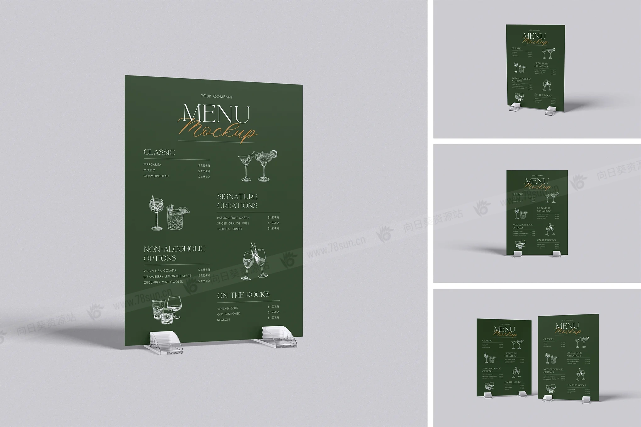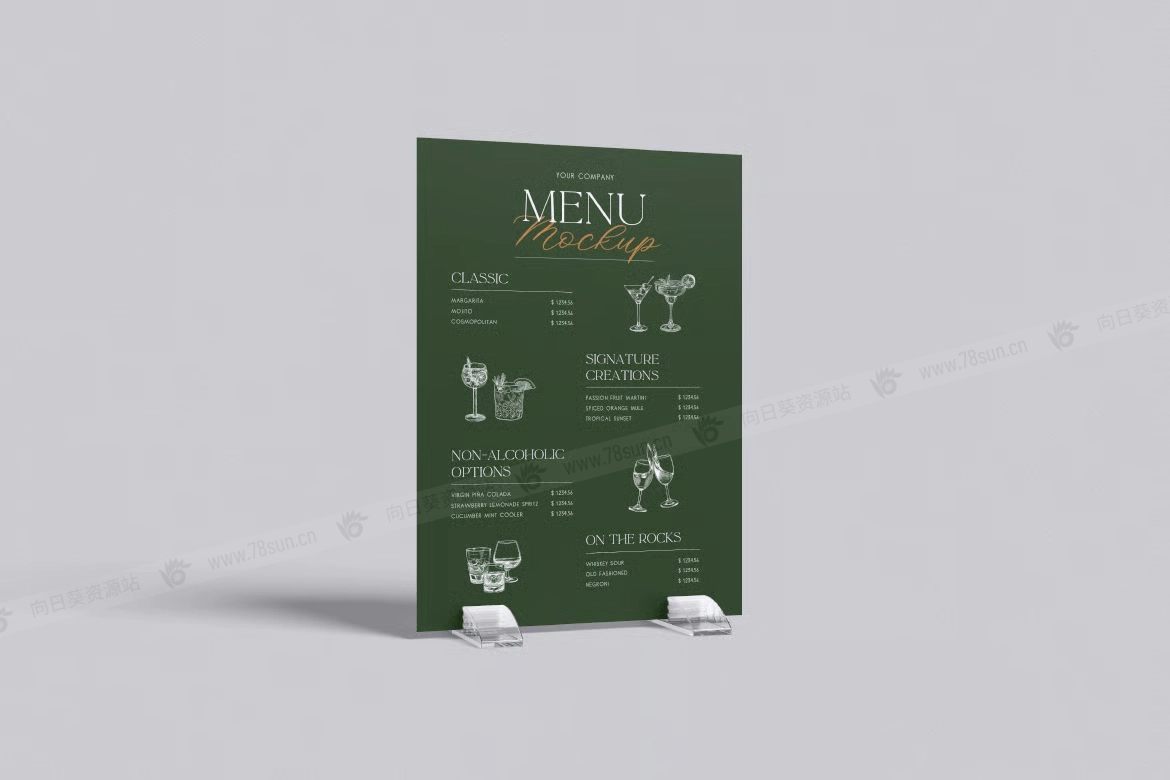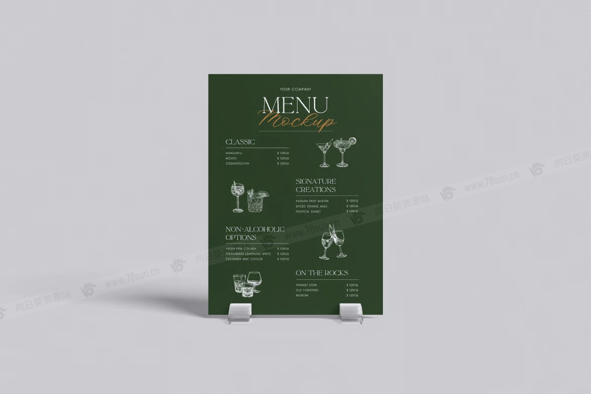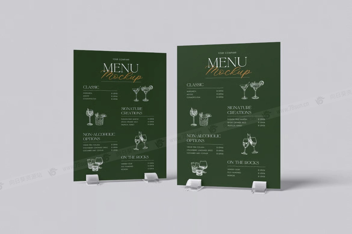 餐厅菜单架品牌VI效果图展示智能贴图psd设计样机,该模型包括 04 个带有分层良好 PSD 文件,并且该模型还使用智能对象功能,这意味着您可以在几秒钟内轻松快速地使用自己的设计更改当前设计。