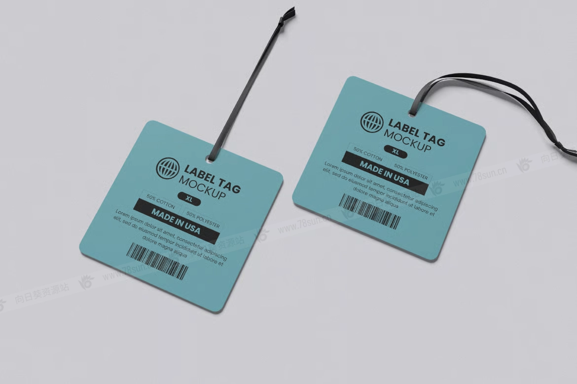 方形服装价格吊牌标签品牌VI效果图展示智能贴图psd设计样机,该模型包括 04 个带有分层良好 PSD 文件,并且该模型还使用智能对象功能,这意味着您可以在几秒钟内轻松快速地使用自己的设计更改当前设计。