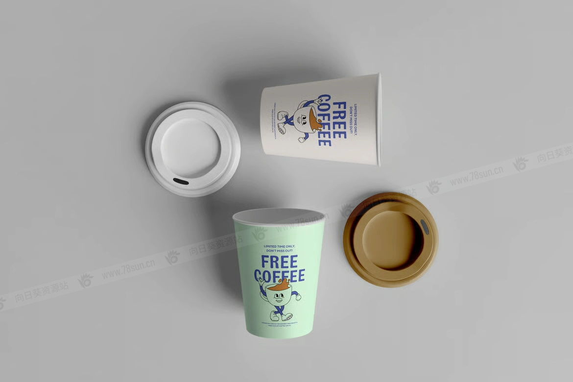 纸杯咖啡杯品牌VI效果图展示智能贴图psd设计样机。使用 Photoshop 中的智能对象功能可以轻松应用。因此,您可以在几秒钟内放置您的设计。模型是用结构良好的图层创建的。