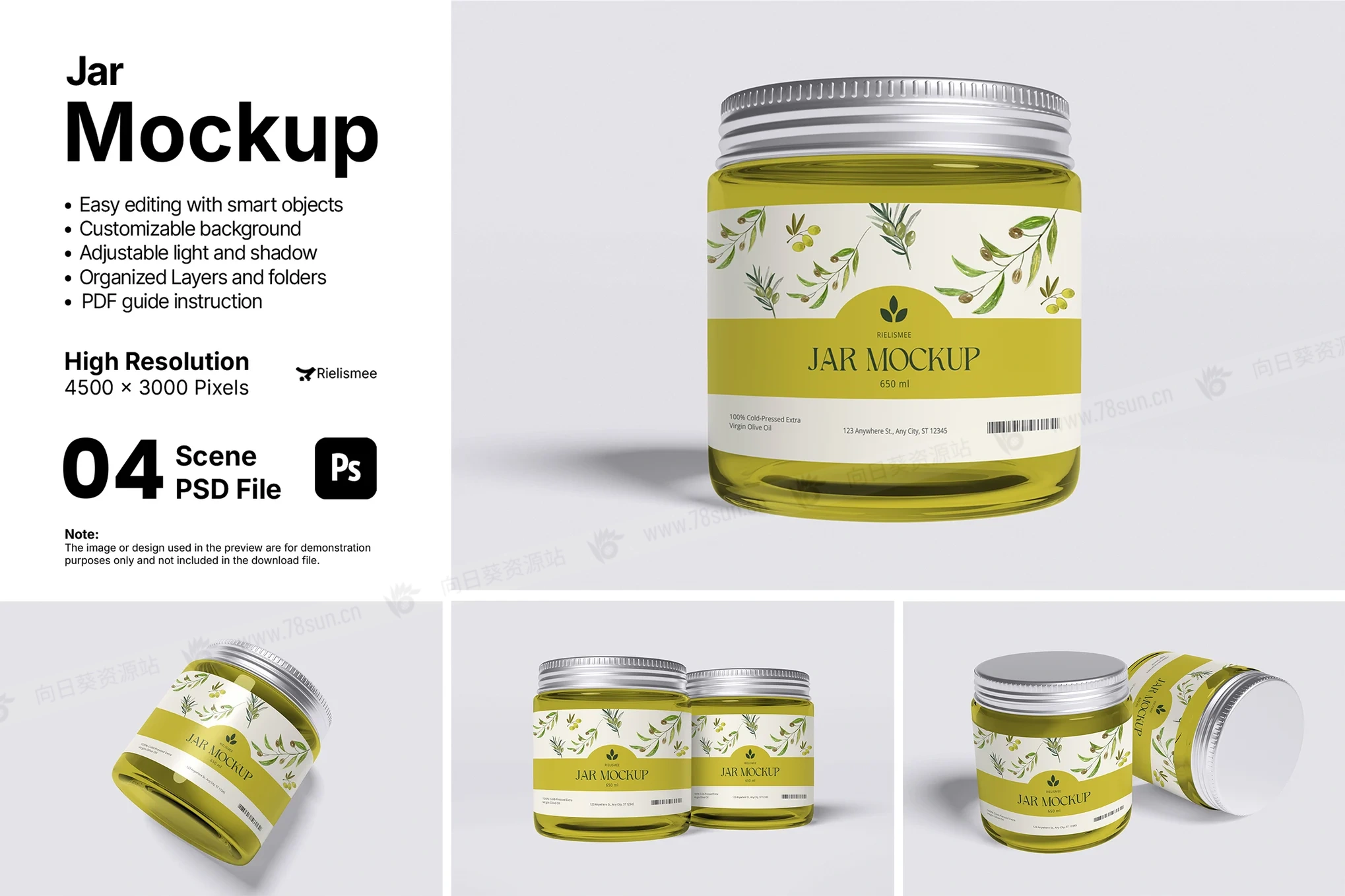 干果食品玻璃罐品牌VI效果图展示智能贴图psd设计样机,