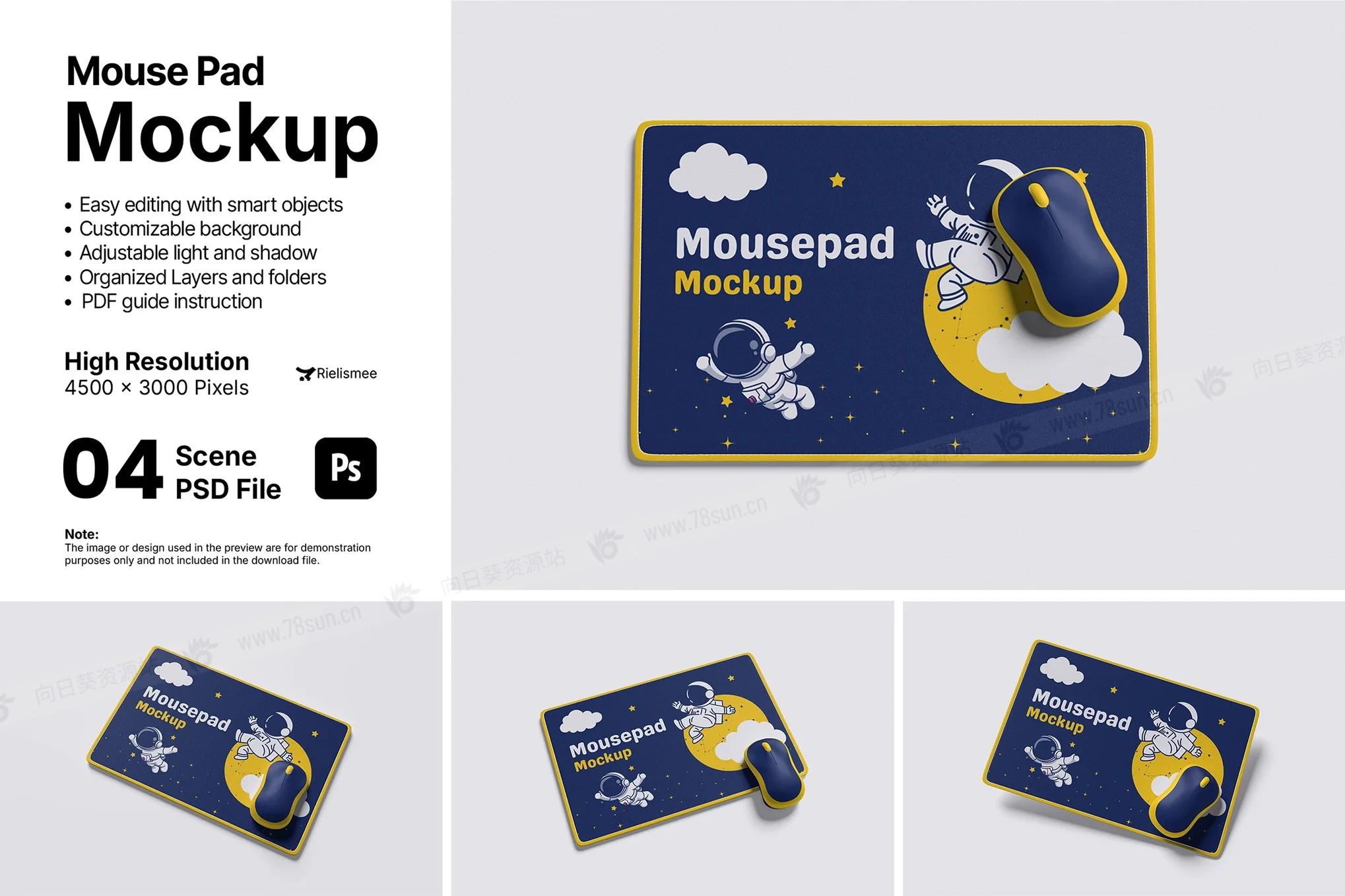 鼠标垫鼠标品牌VI效果图展示智能贴图psd设计样机,