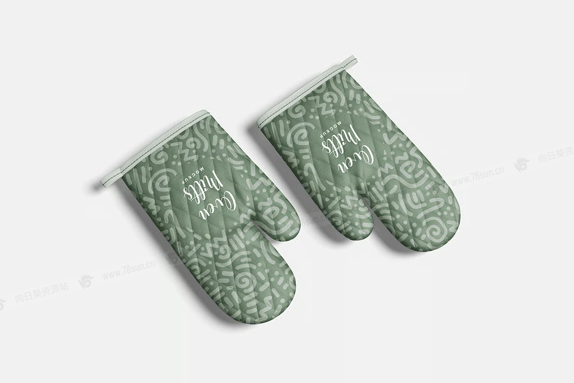 烤箱手套品牌VI效果图展示智能贴图psd设计样机,使用智能对象功能轻松快速地替换设计。以 PSD Photoshop 格式提供,具有智能对象功能,可帮助您在几秒钟内将当前设计替换为您自己的设计。