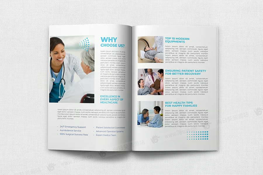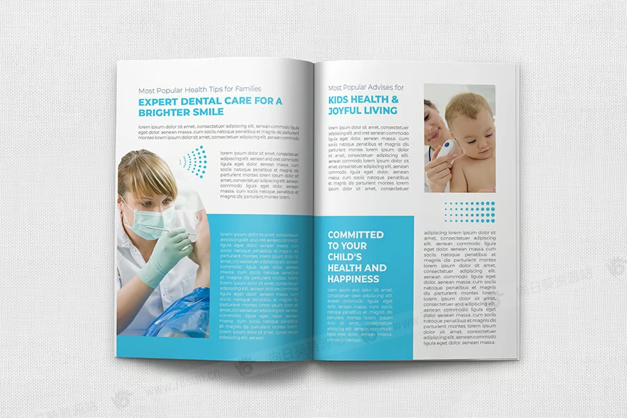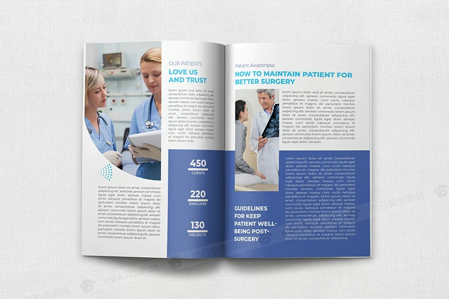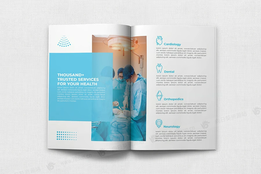 医疗保健医院小册子杂志宣传册画册indd pdf设计模板,以现代简洁的设计展示其服务的诊所、医院和医疗企业。该模板可通过完全可编辑的部分轻松定制,非常适合推广医疗专业知识、患者护理和医疗保健产品。