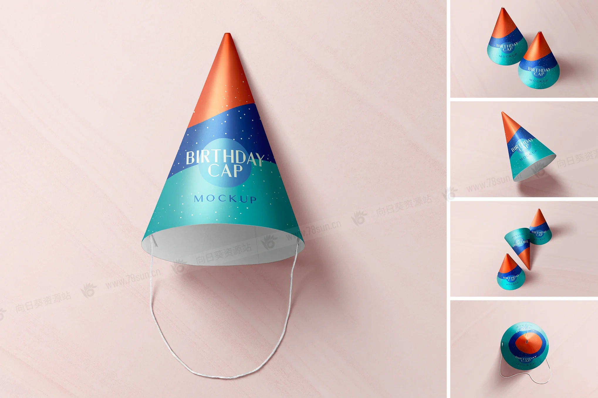 生日帽品牌VI效果图展示智能贴图psd设计样机。这个生日帽模型提供可编辑的图层和逼真的视图,让您的派对主题概念栩栩如生。无论是儿童活动还是促销庆祝活动,这款生日帽模型都有助于提供专业、充满活力的演示。