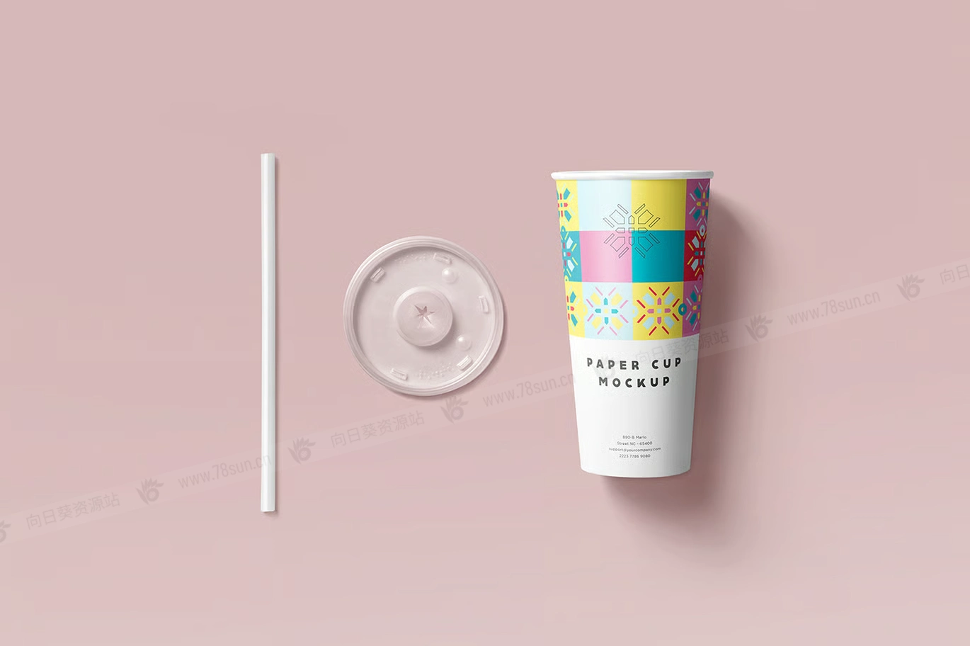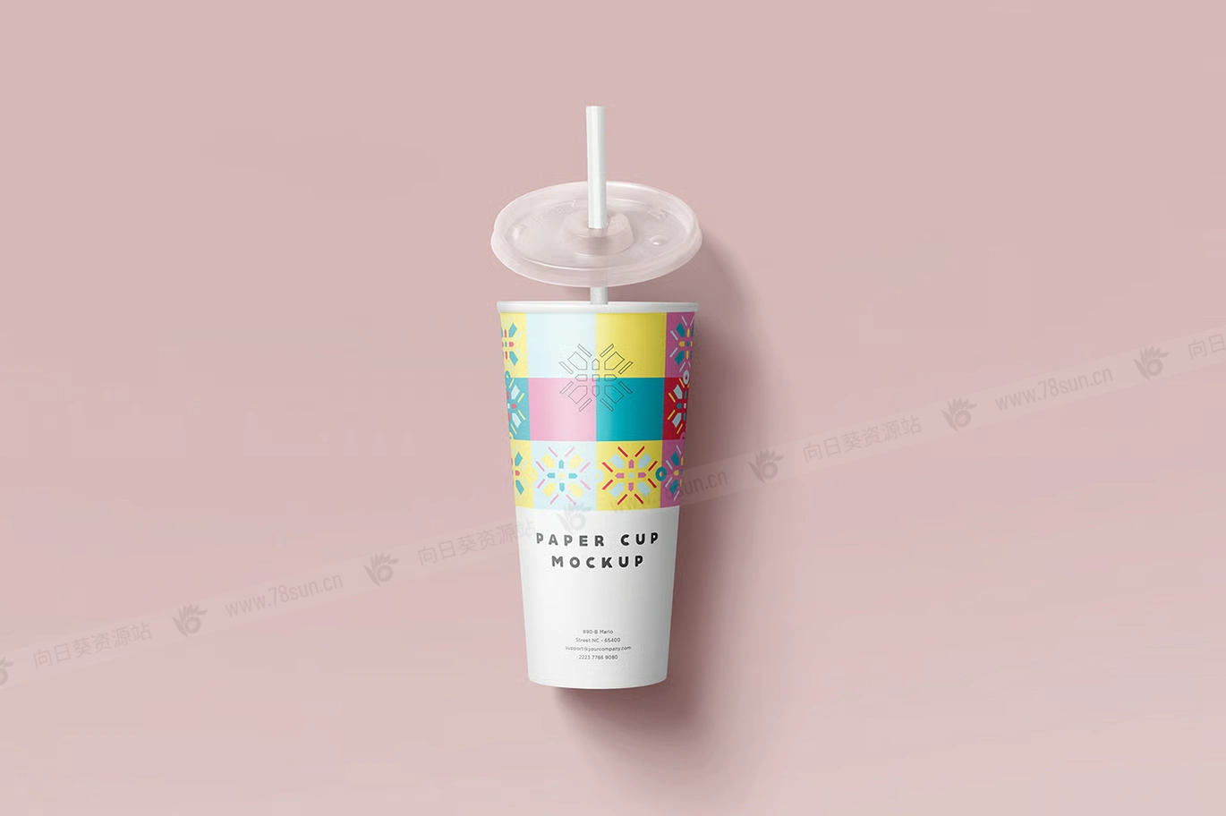 纸杯饮料汽水杯品牌VI效果图展示智能贴图psd设计样机,具有可编辑的智能图层、逼真的纹理和可定制的颜色,以匹配任何品牌风格。