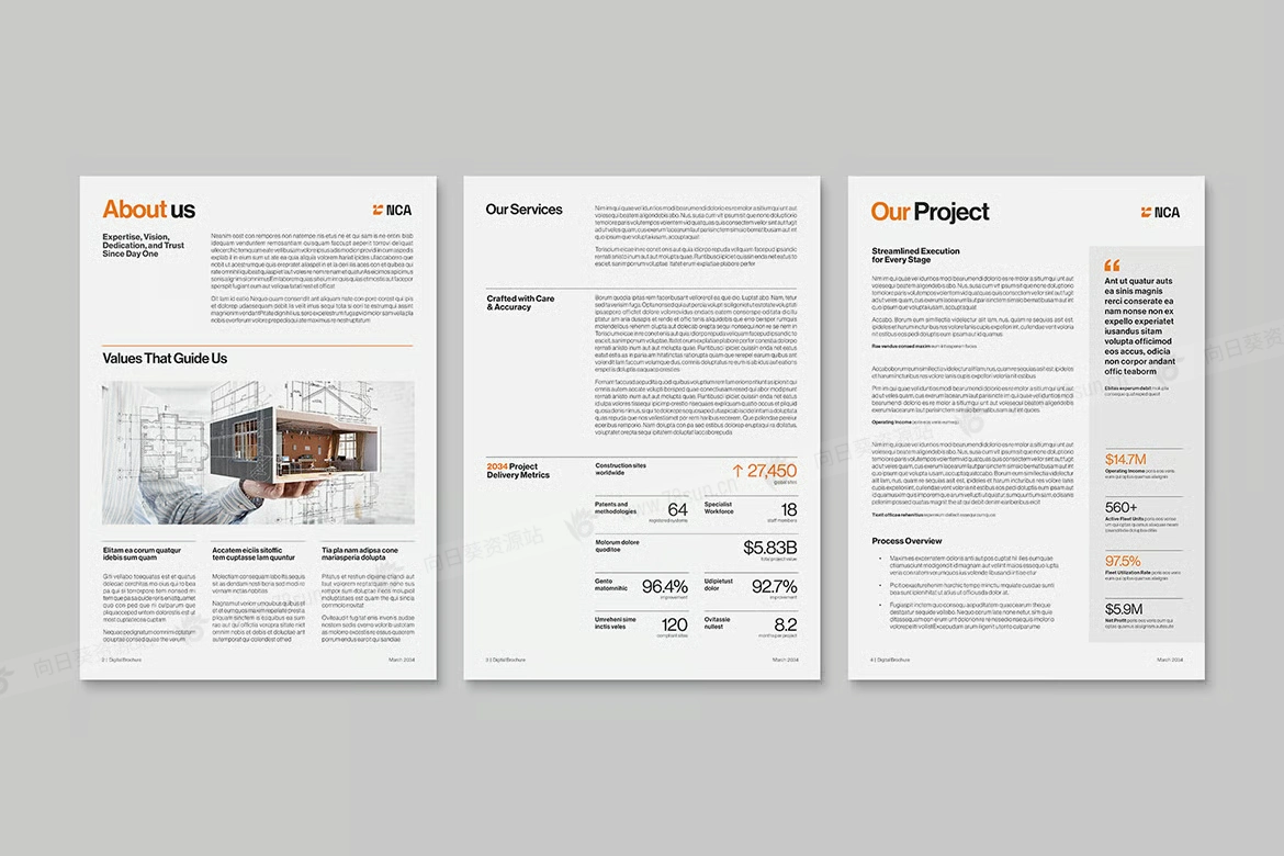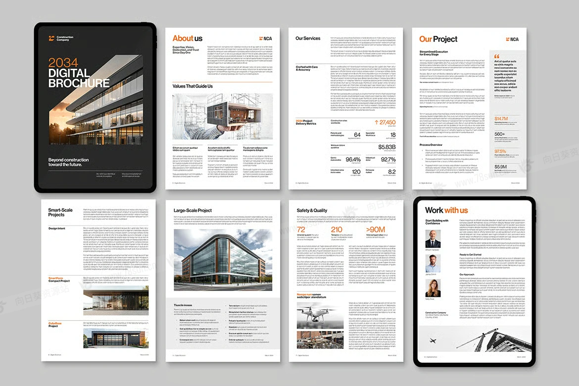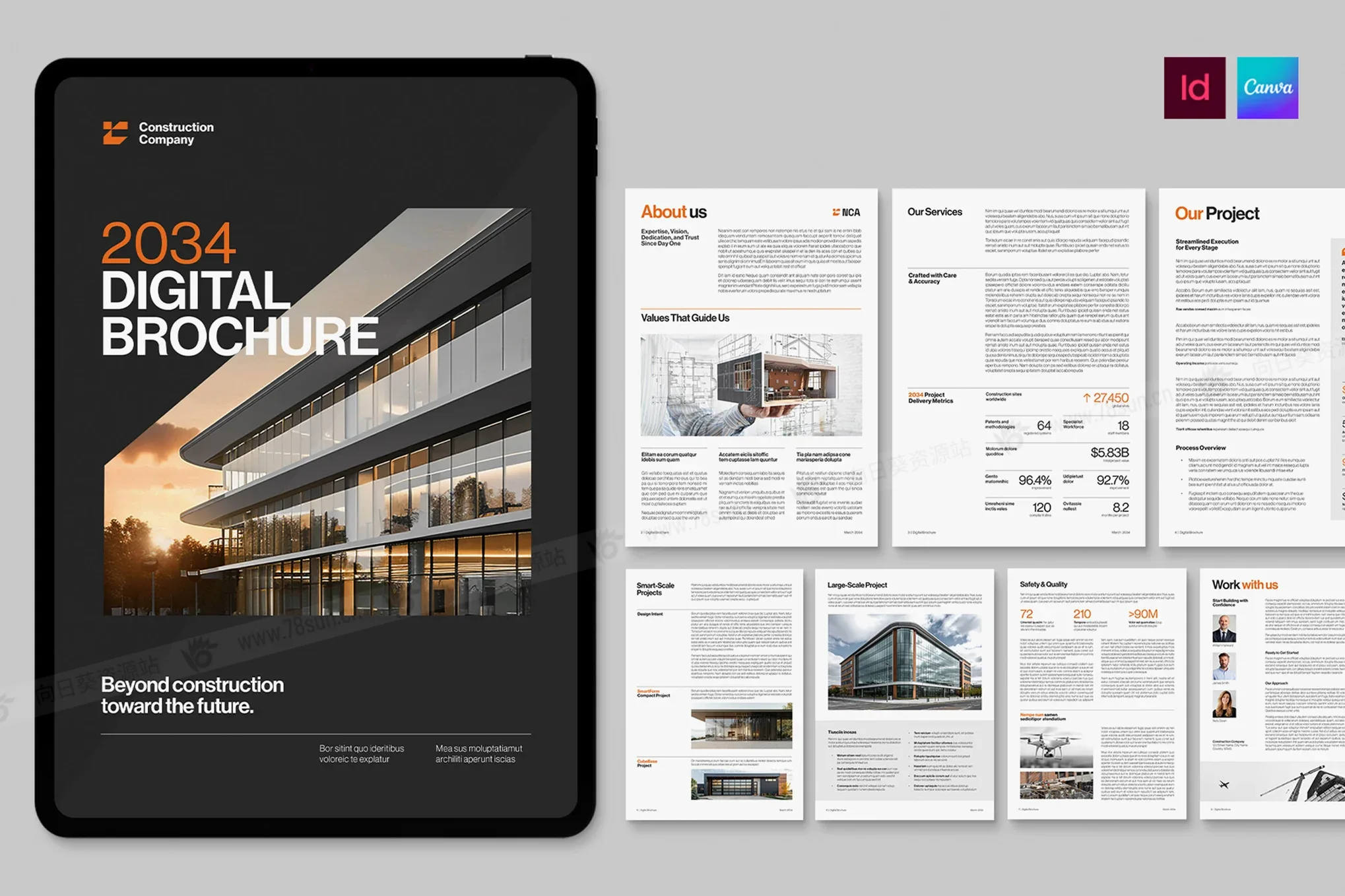 建筑房地产新闻资讯电子书数字小册子杂志宣传册画册indd设计模板。它提供 Canva 和 InDesign 格式(IDML、INDD),确保无缝定制和精美的 PDF 文档设计。该模板具有各种文本布局选项,增强了内容的视觉吸引力,提供了引人入胜的封面和优雅的文档框架。