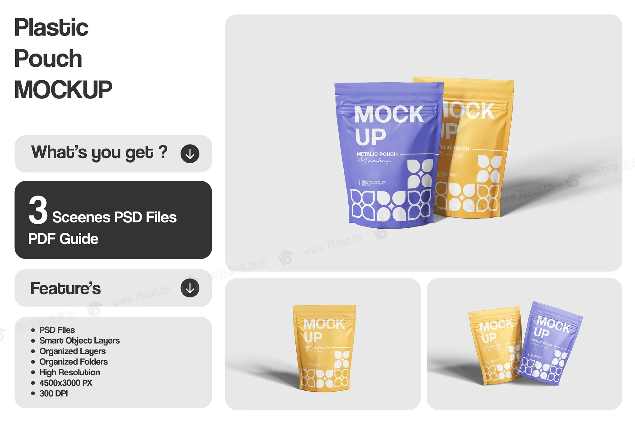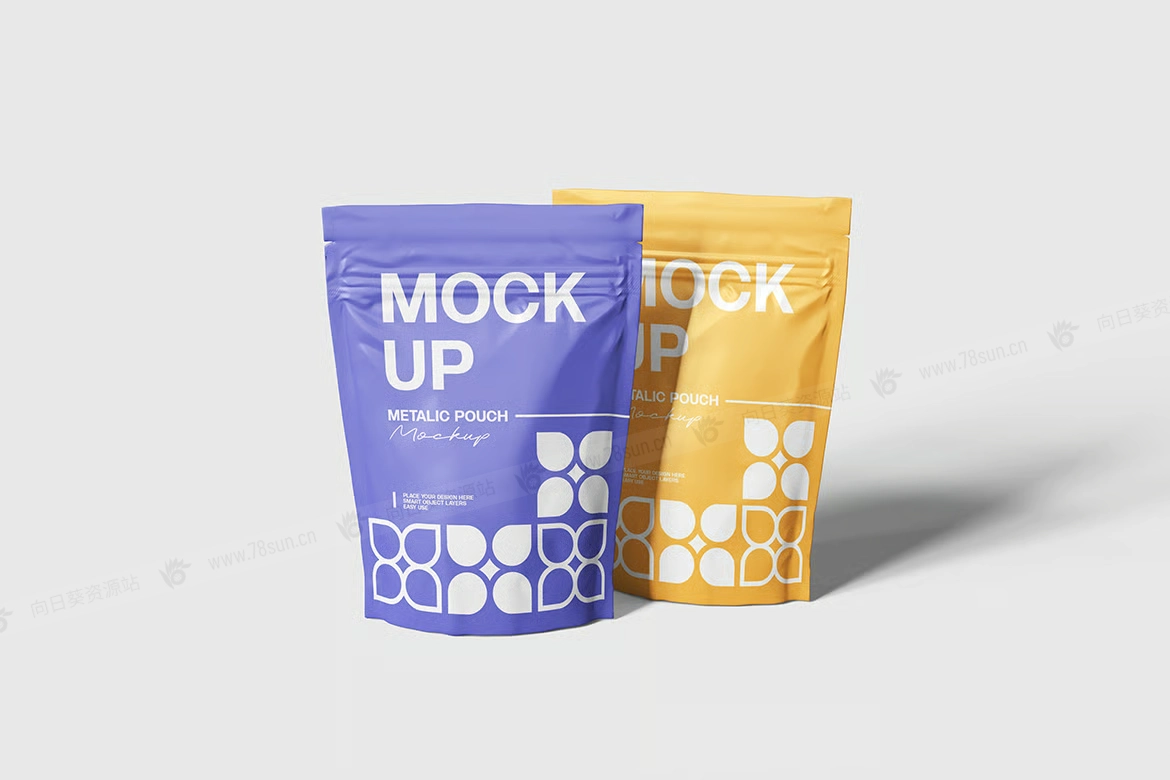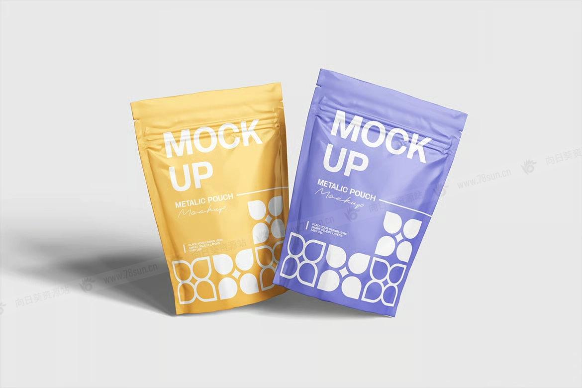 站立式拉链锁袋品牌VI效果图展示智能贴图psd设计样机。使用智能对象轻松替换为您的设计,双击智能图层,复制并粘贴您的图稿。 包含精心组织的 PSD 文件,具有结构良好的图层。